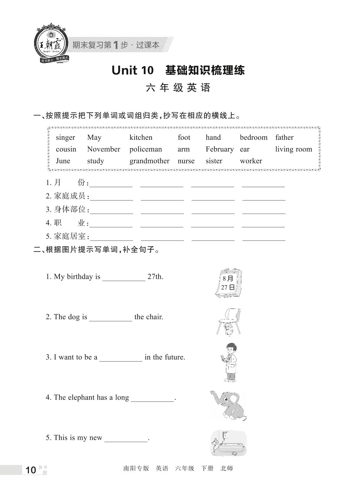 王朝霞期末过课本——Unit 10 基础知识梳理练六年级下册英语(北师版)