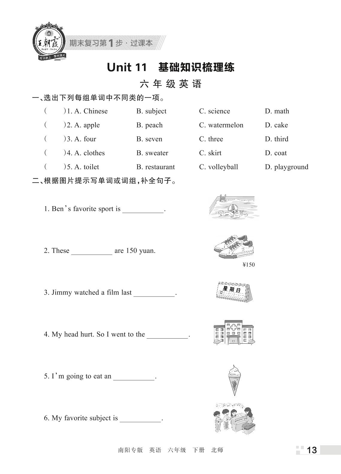 王朝霞期末过课本——Unit 11 基础知识梳理练六年级下册英语(北师版)