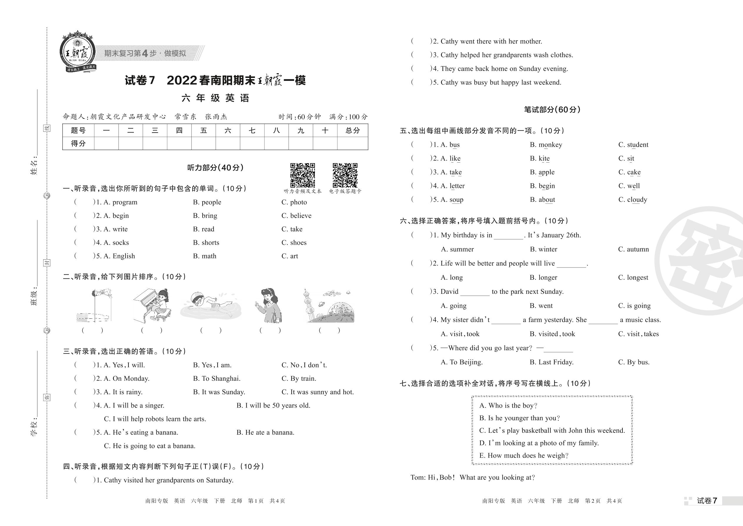 王朝霞期末模拟卷六年级下册英语(北师版)【7】