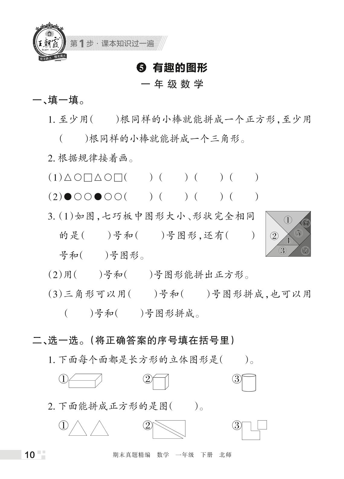 王朝霞期末过课本——5 有趣的图形一年级下册数学(北师版)_R220411140534745