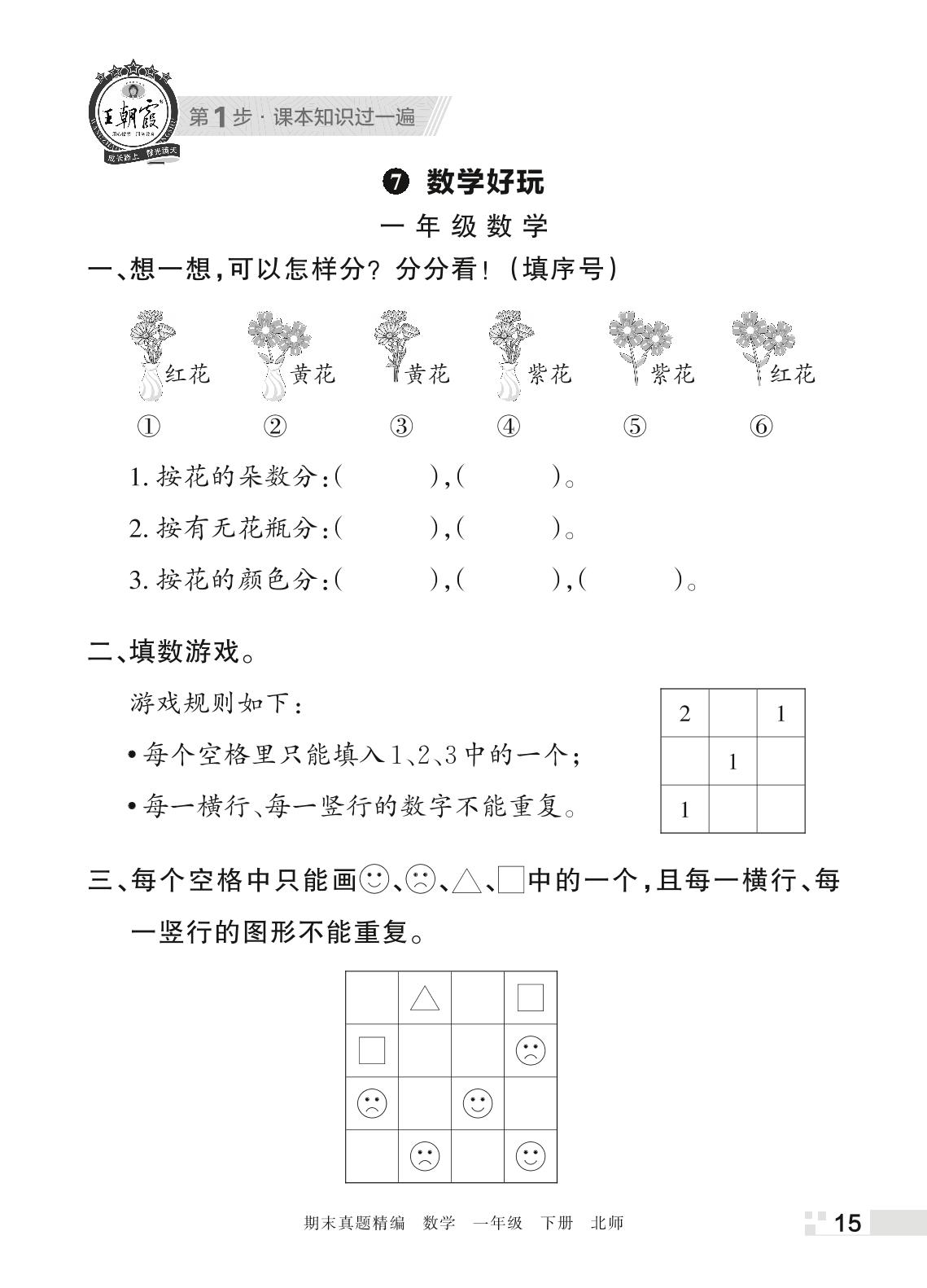 王朝霞期末过课本——7 数学好玩一年级下册数学(北师版)_R220411140534547