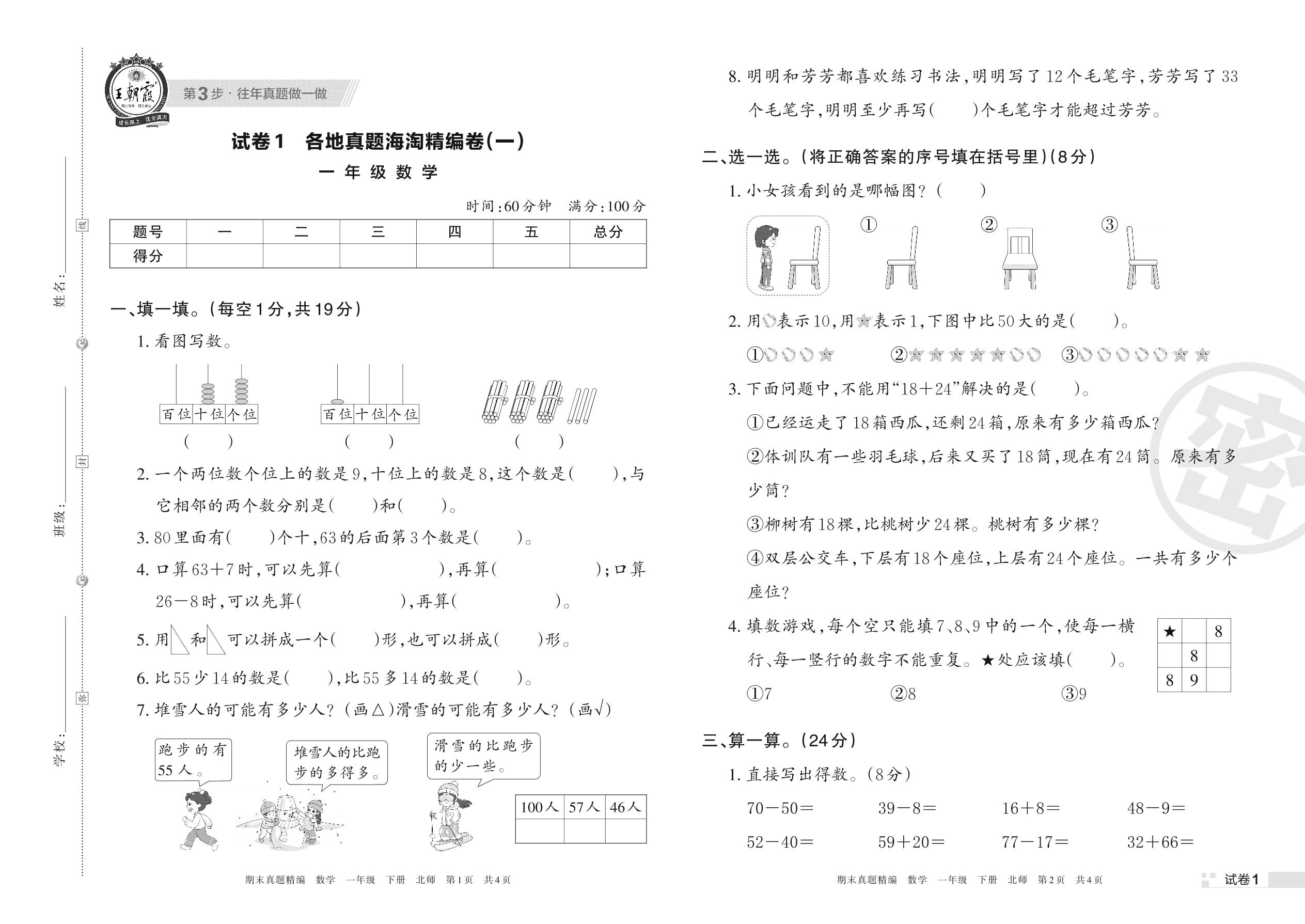 各地真题海淘精编卷(一)一年级下册数学(北师版)_R220411140536079【1】