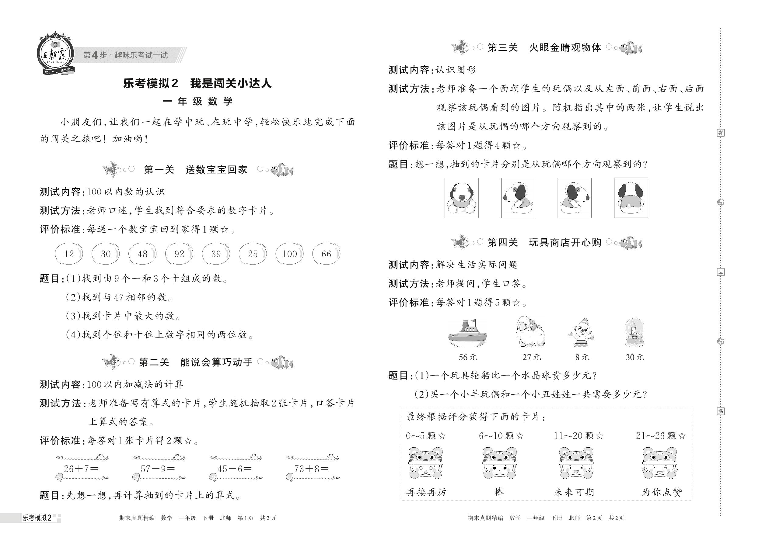 乐考模拟2 我是闯关小达人一年级下册数学(北师版)
