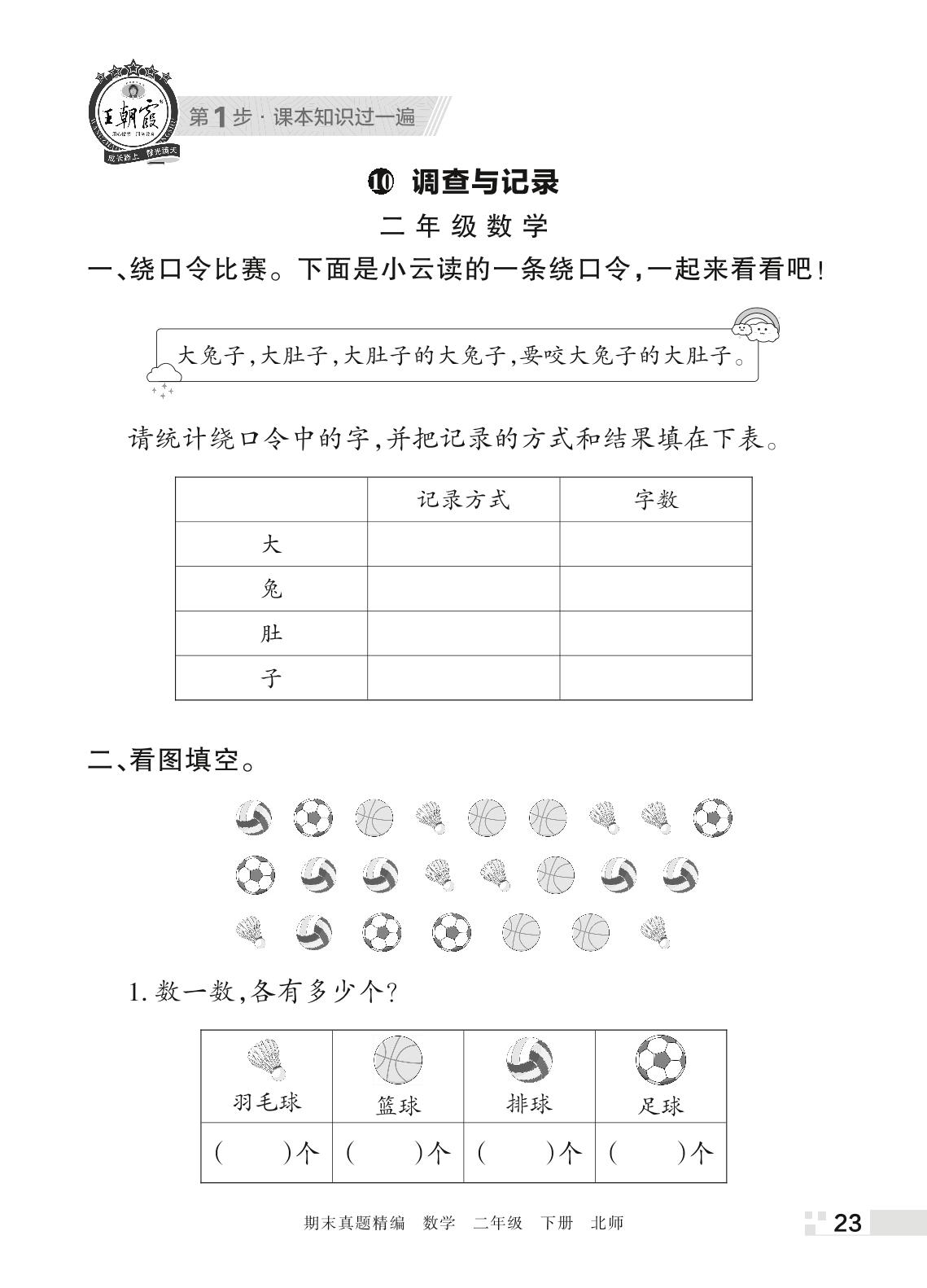王朝霞期末过课本——10 调查与记录二年级下册数学(北师版)_R220411162747384
