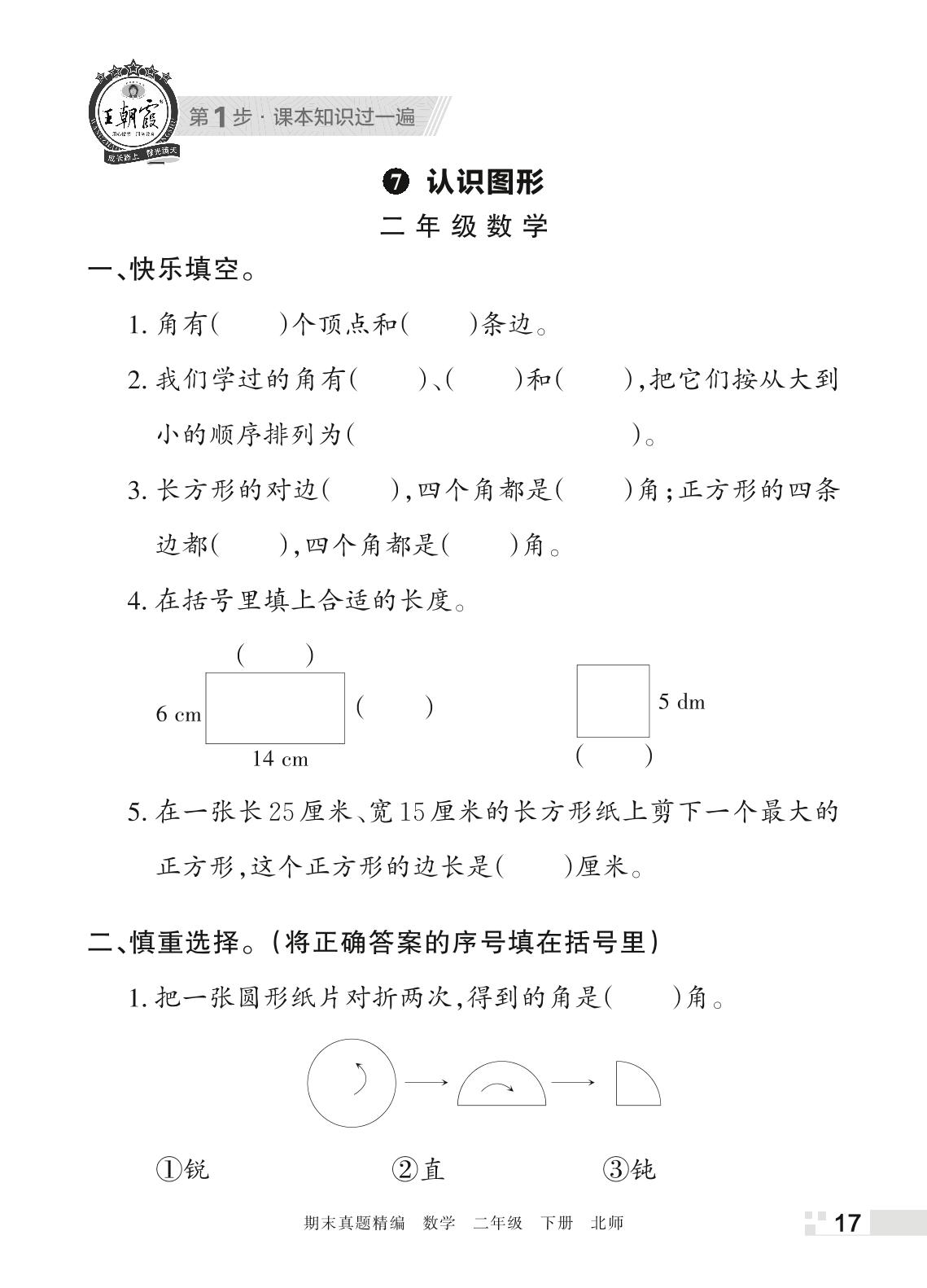 王朝霞期末过课本——7 认识图形二年级下册数学(北师版)_R220411162747896