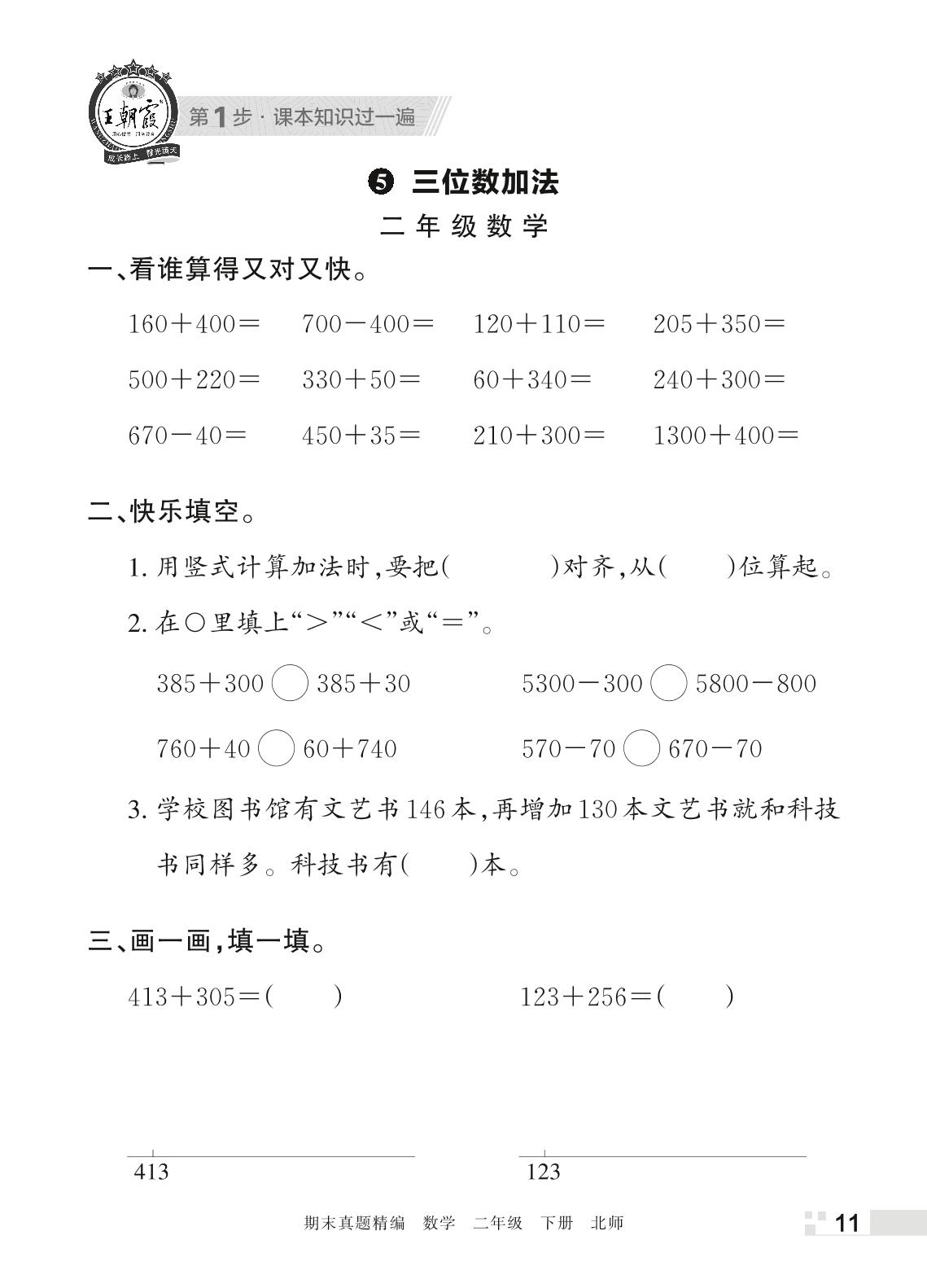 王朝霞期末过课本——5 三位数加法二年级下册数学(北师版)