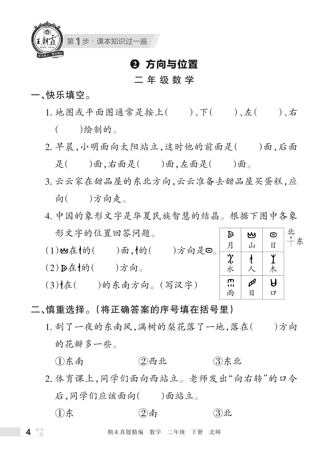 王朝霞期末过课本——2 方向与位置二年级下册数学(北师版)_R220411162747804