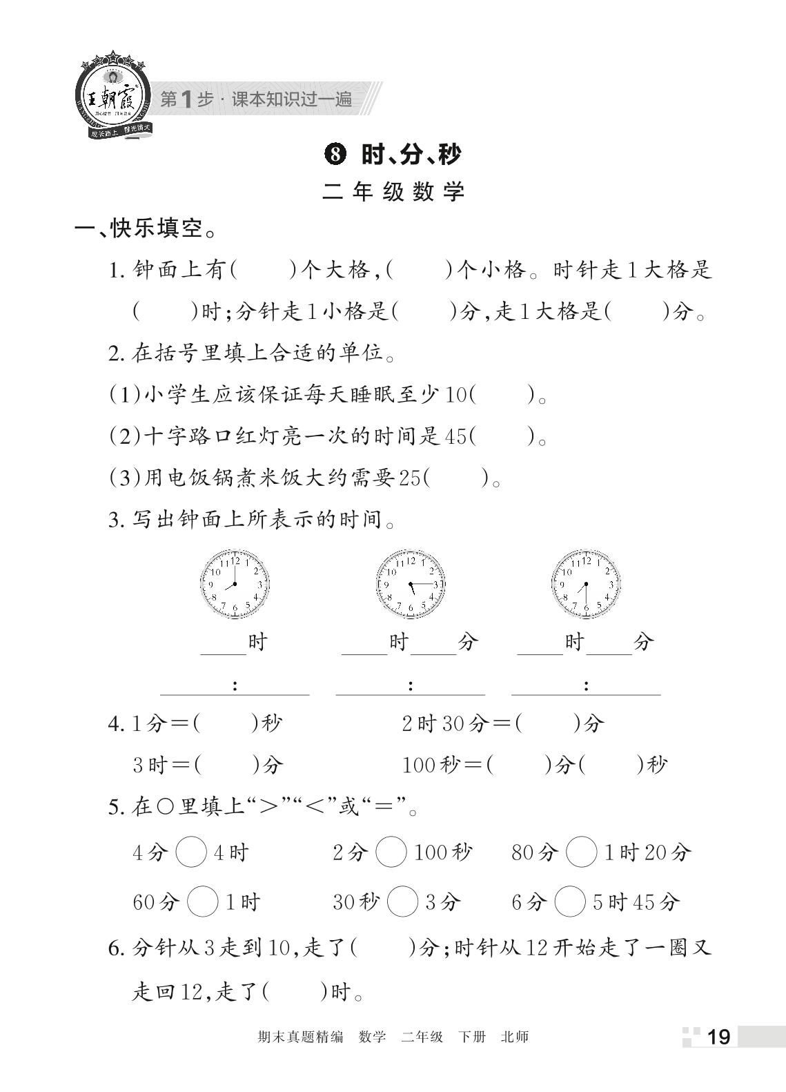 王朝霞期末过课本——8 时、分、秒二年级下册数学(北师版)_R220411162747012