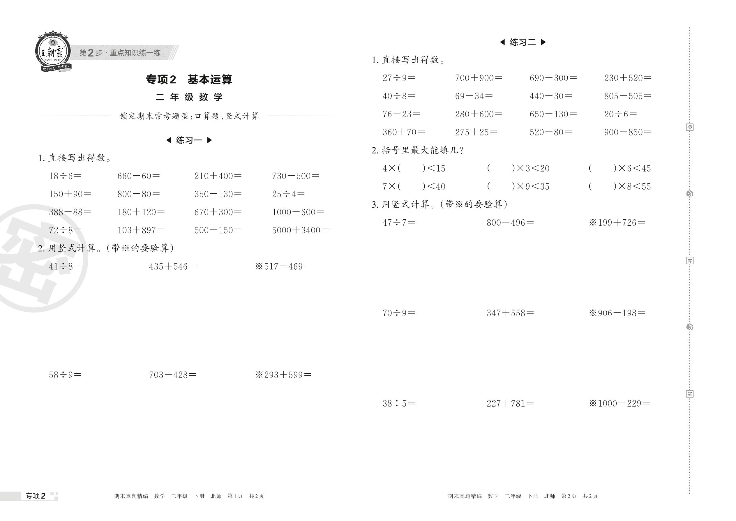 王朝霞期末专项卷——基本运算二年级下册数学(北师版)_R220411162747879【2】