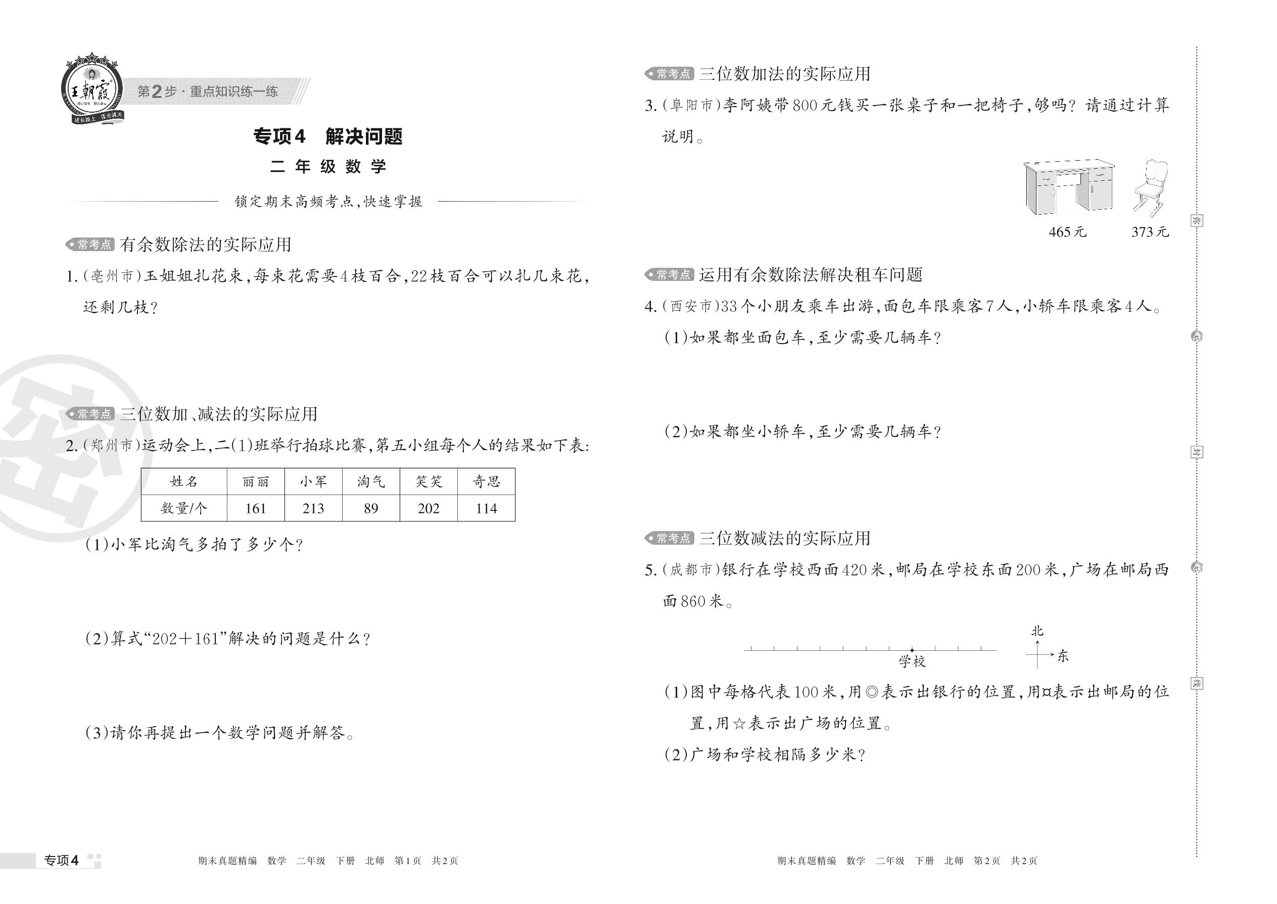 王朝霞期末专项卷——解决问题二年级下册数学(北师版)_R220411162748084【4】