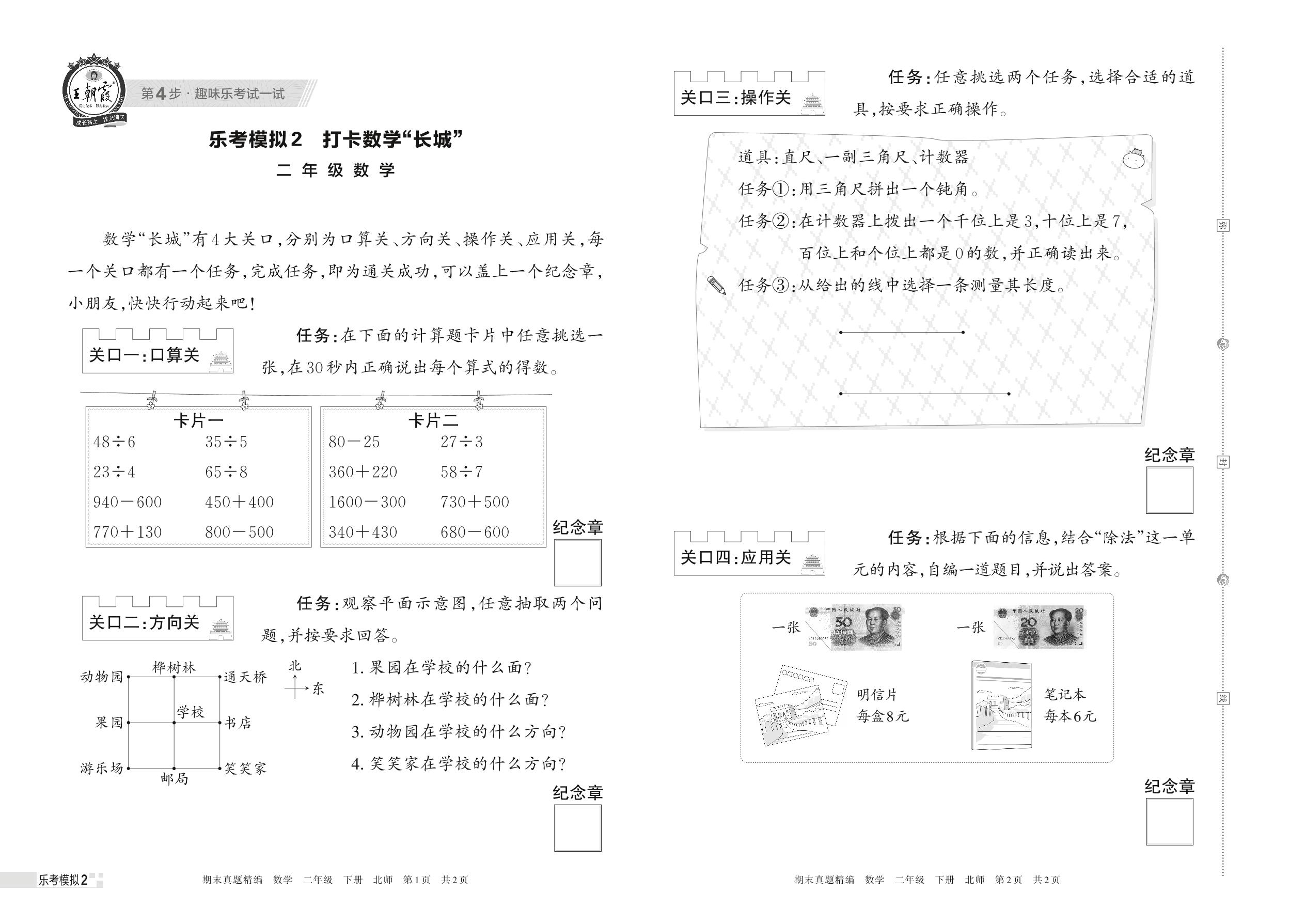 乐考模拟2 打卡数学“长城”二年级下册数学(北师版)