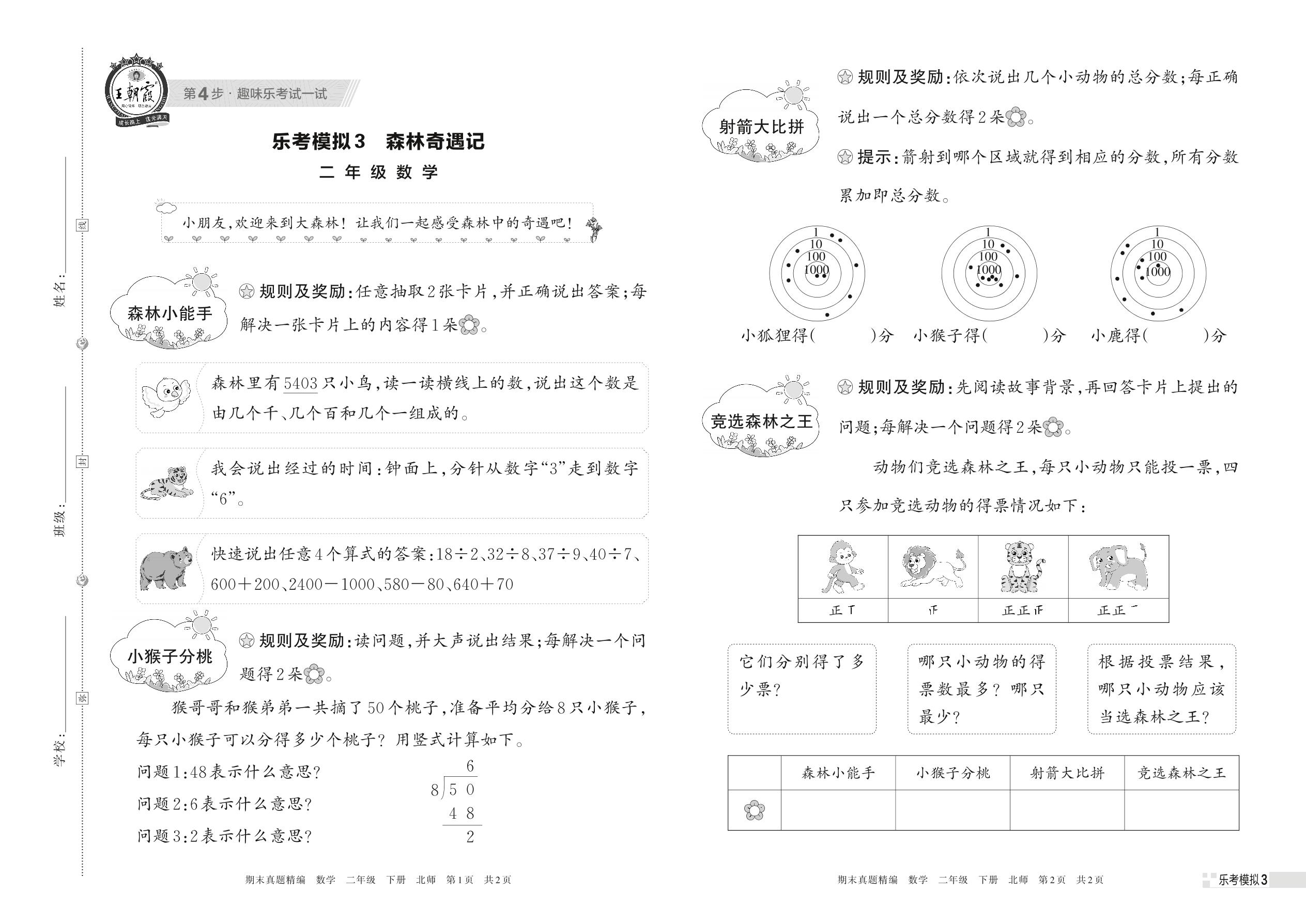 乐考模拟3 森林奇遇记二年级下册数学(北师版)