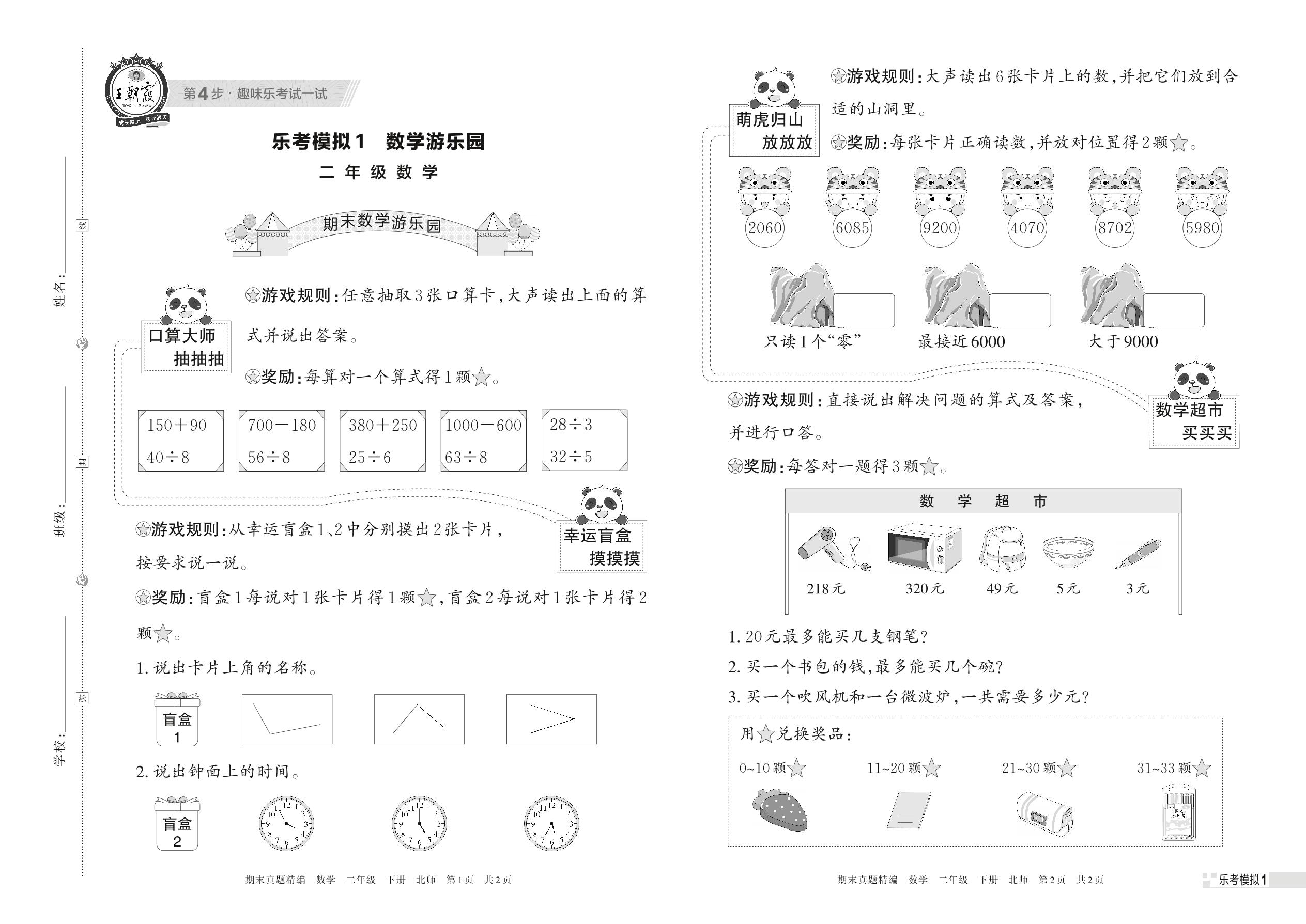 乐考模拟1 数学游乐园二年级下册数学(北师版)_R220411162749063