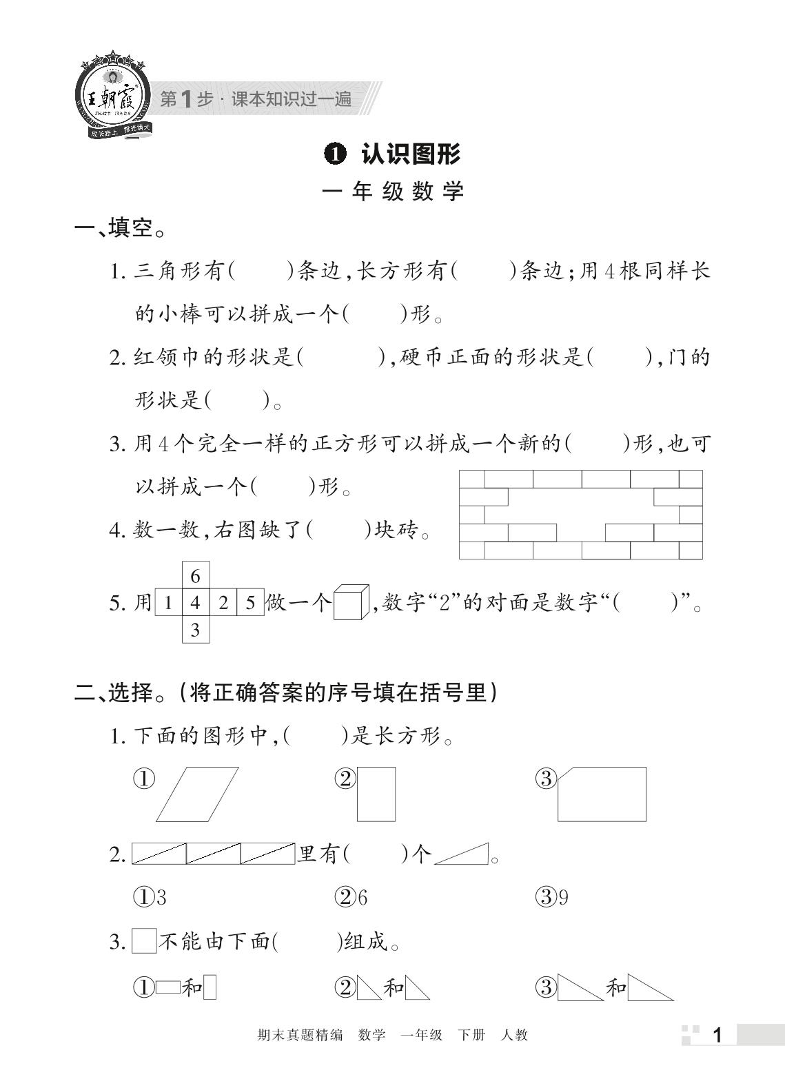 王朝霞期末过课本——1 认识图形一年级下册数学(人教版)_R220411163458581