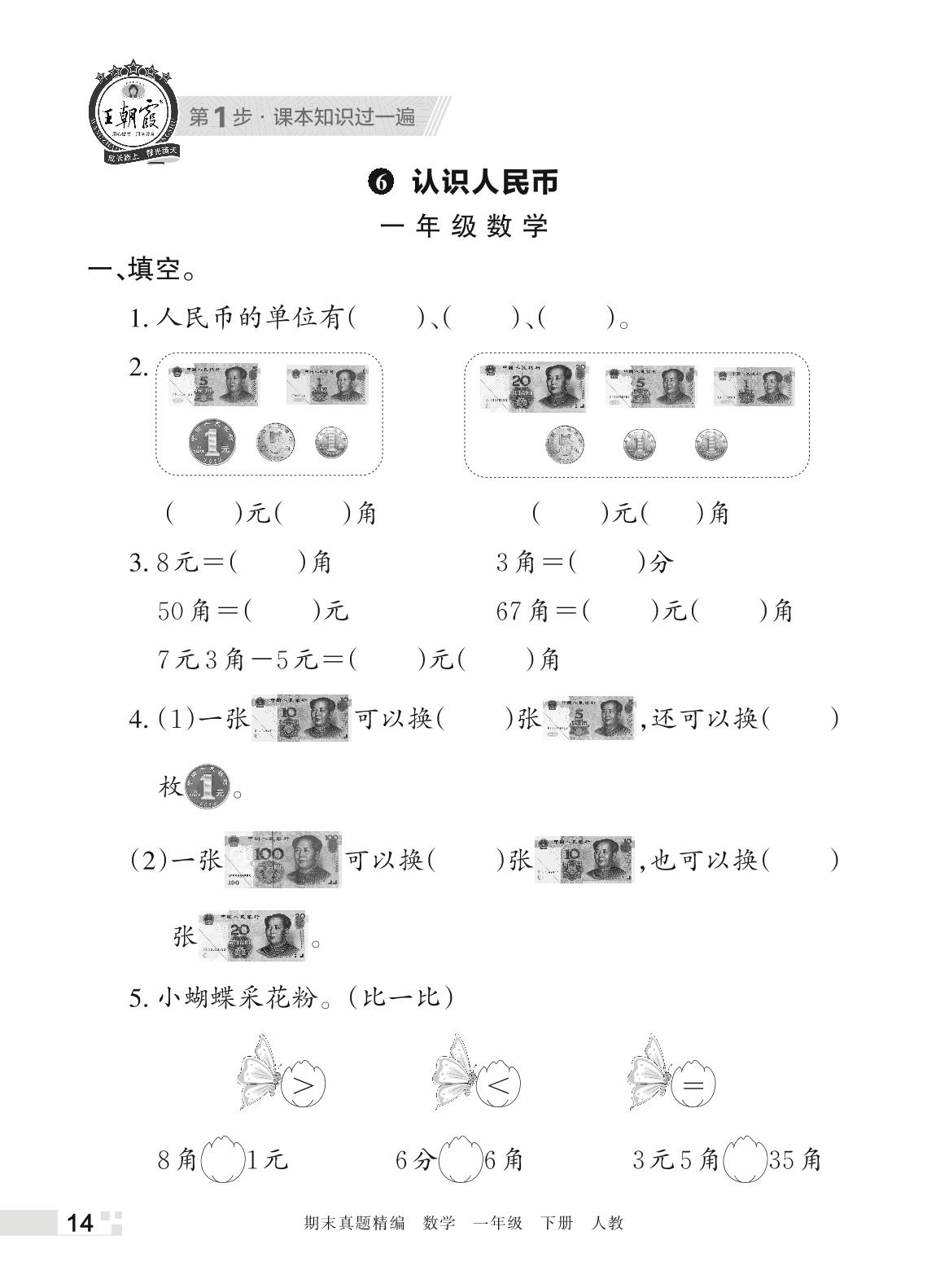 王朝霞期末过课本——6 认识人民币一年级下册数学(人教版)_R220411163459980