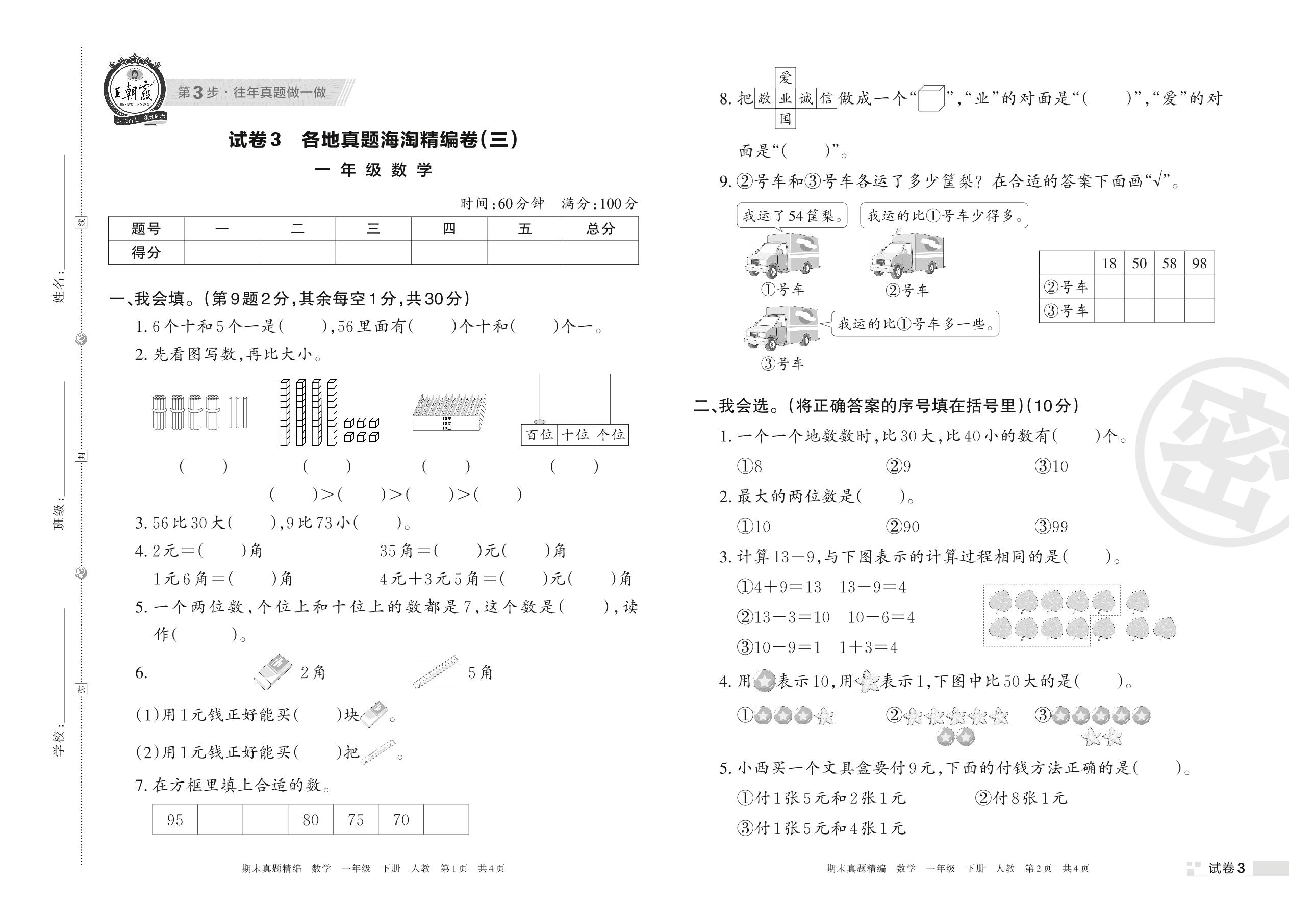 各地真题海淘精编卷(三)一年级下册数学(人教版)_R220411163500578【3】