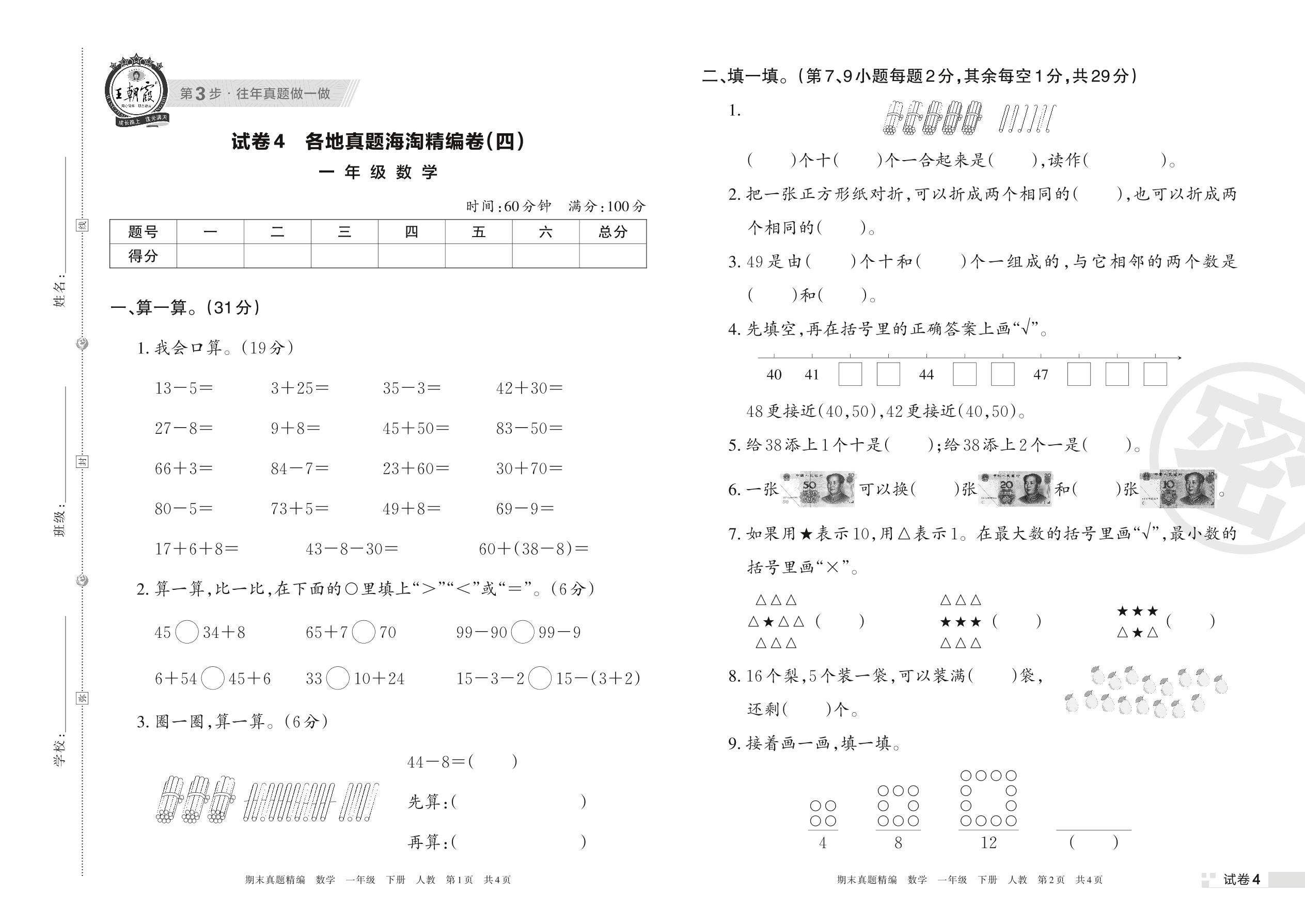 一年级数学人教版下册期末卷