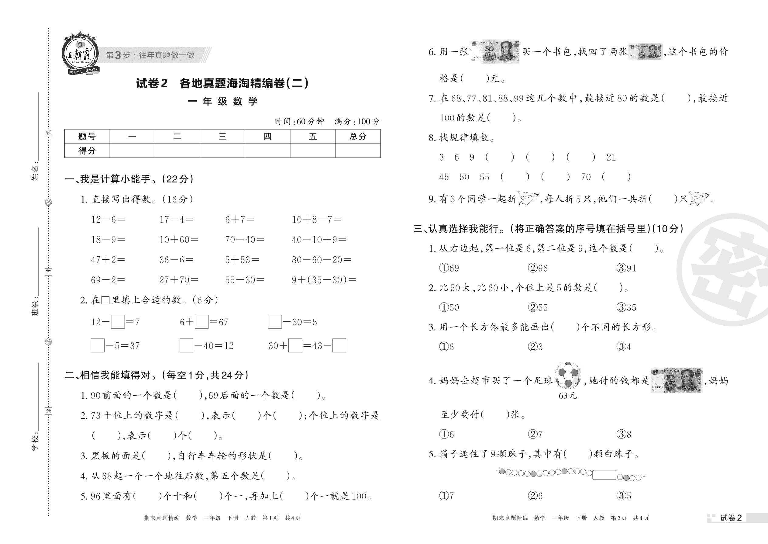 各地真题海淘精编卷(二)一年级下册数学(人教版)_R220411163500252【2】