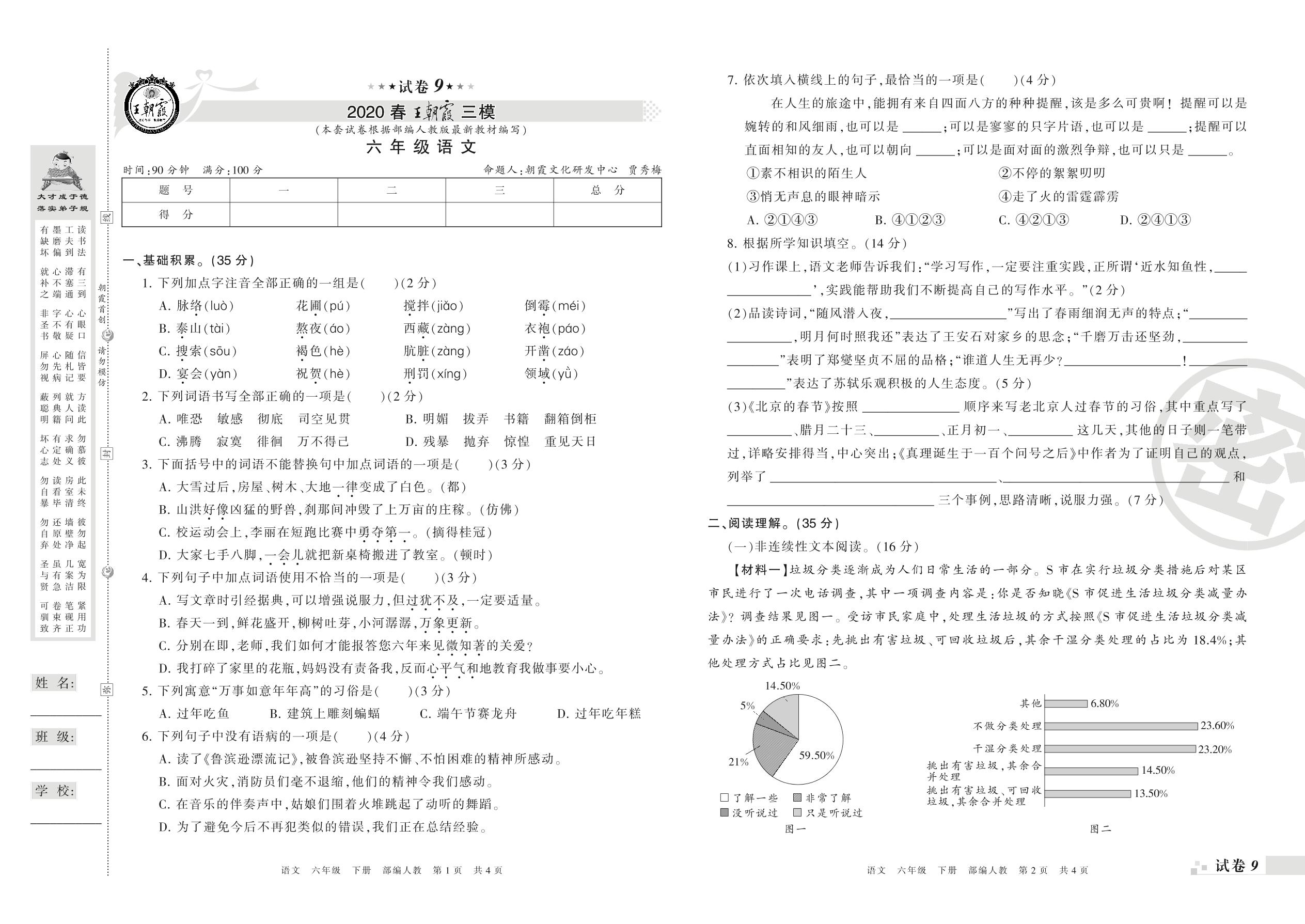 王朝霞期末模拟卷六年级下册语文(人教版)_R21080223625【9】