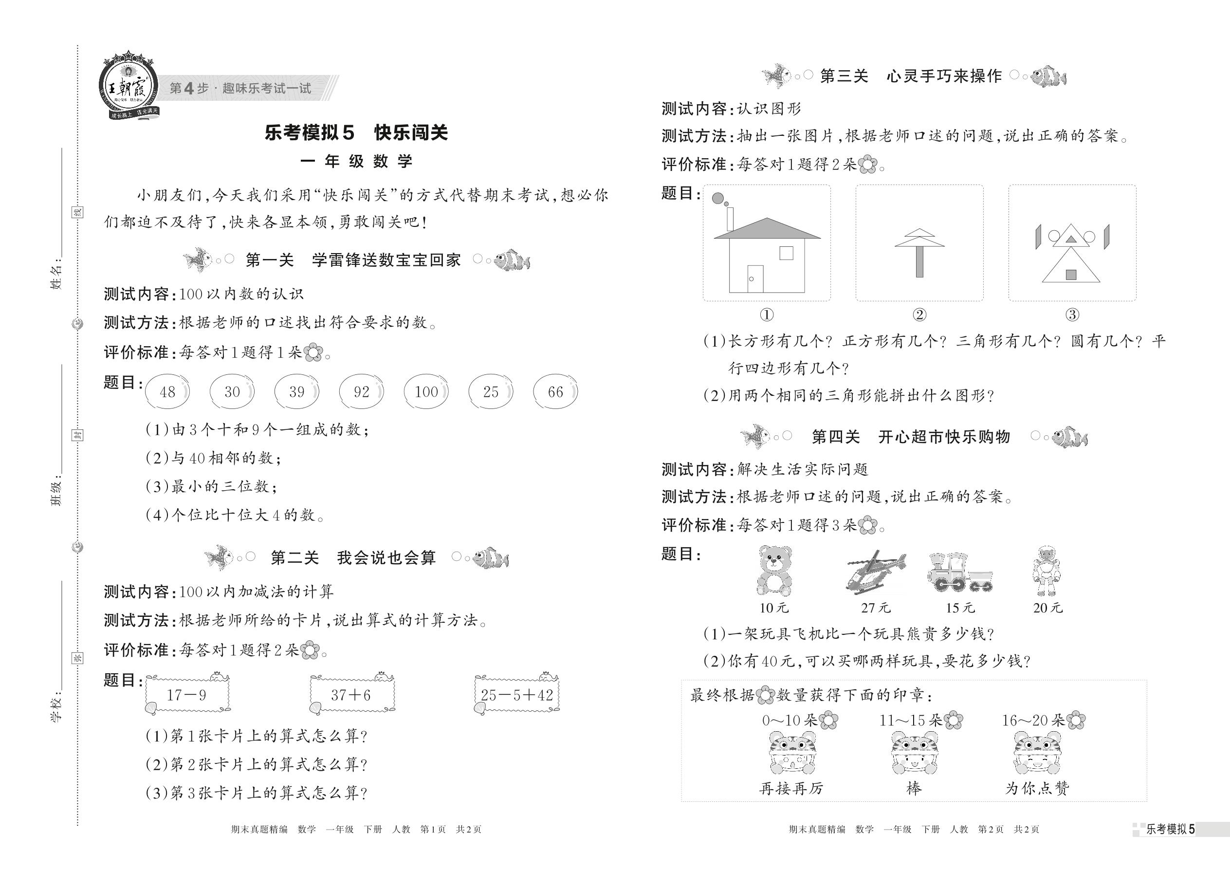 乐考模拟5 快乐闯关一年级下册数学(人教版)
