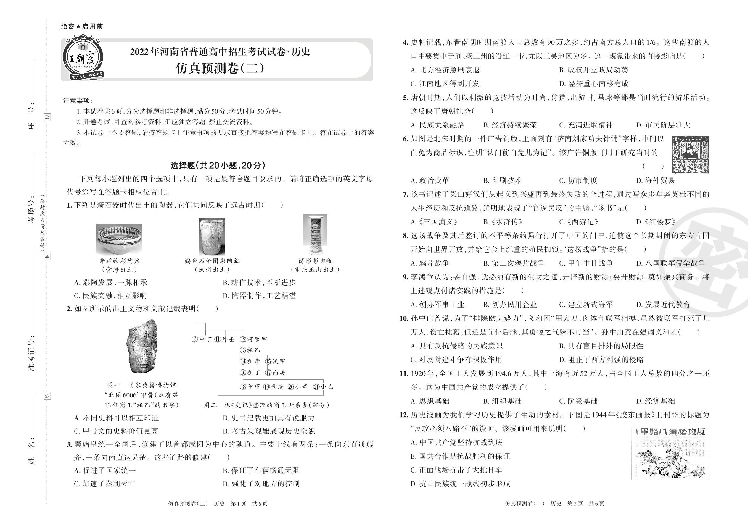 2022年河南省普通高中招生考试试卷·历史仿真预测卷(二)