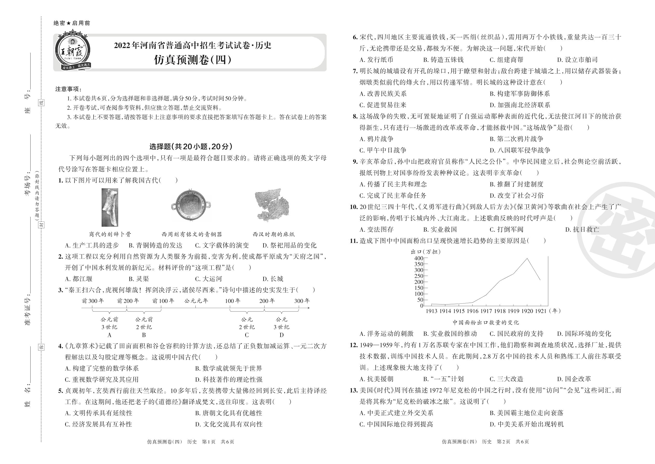 2022年河南省普通高中招生考试试卷·历史仿真预测卷(四)