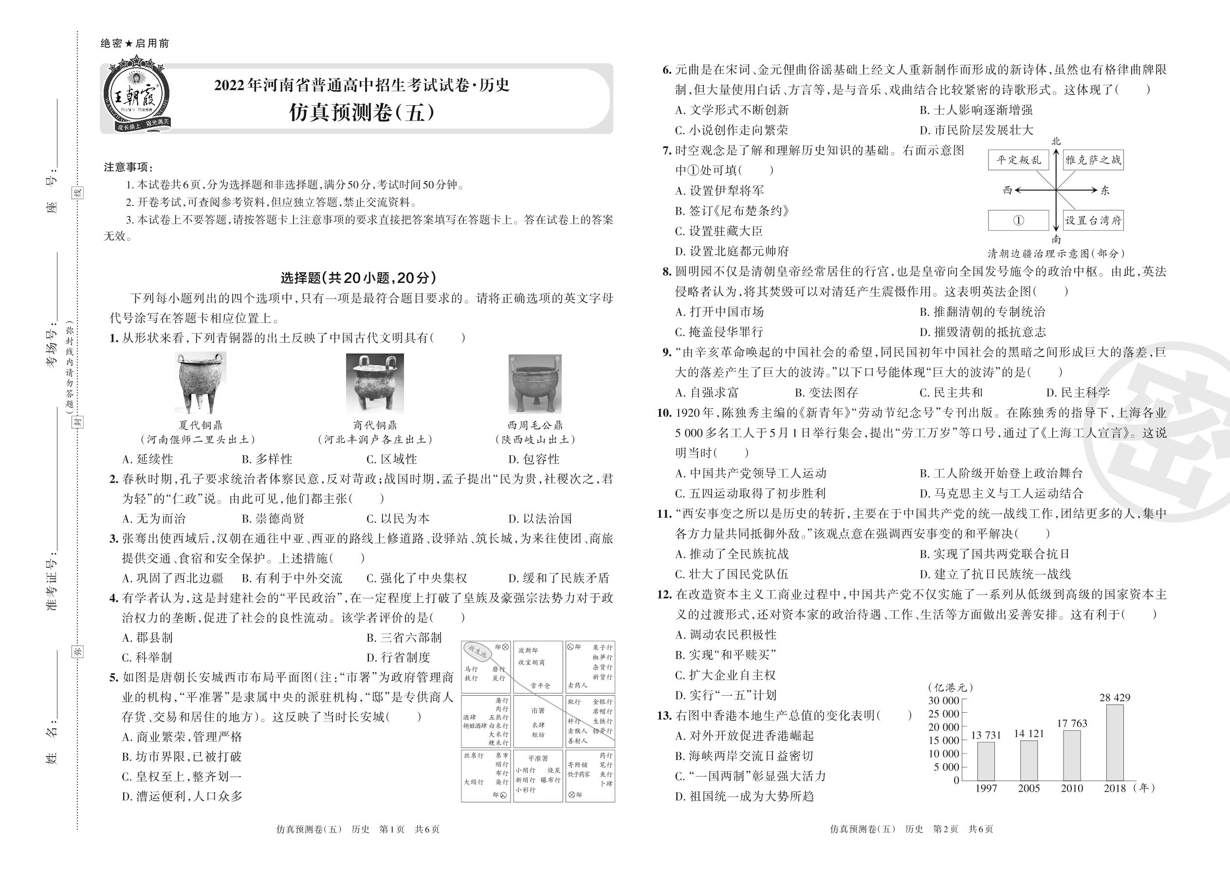 2022年河南省普通高中招生考试试卷·历史仿真预测卷(五)
