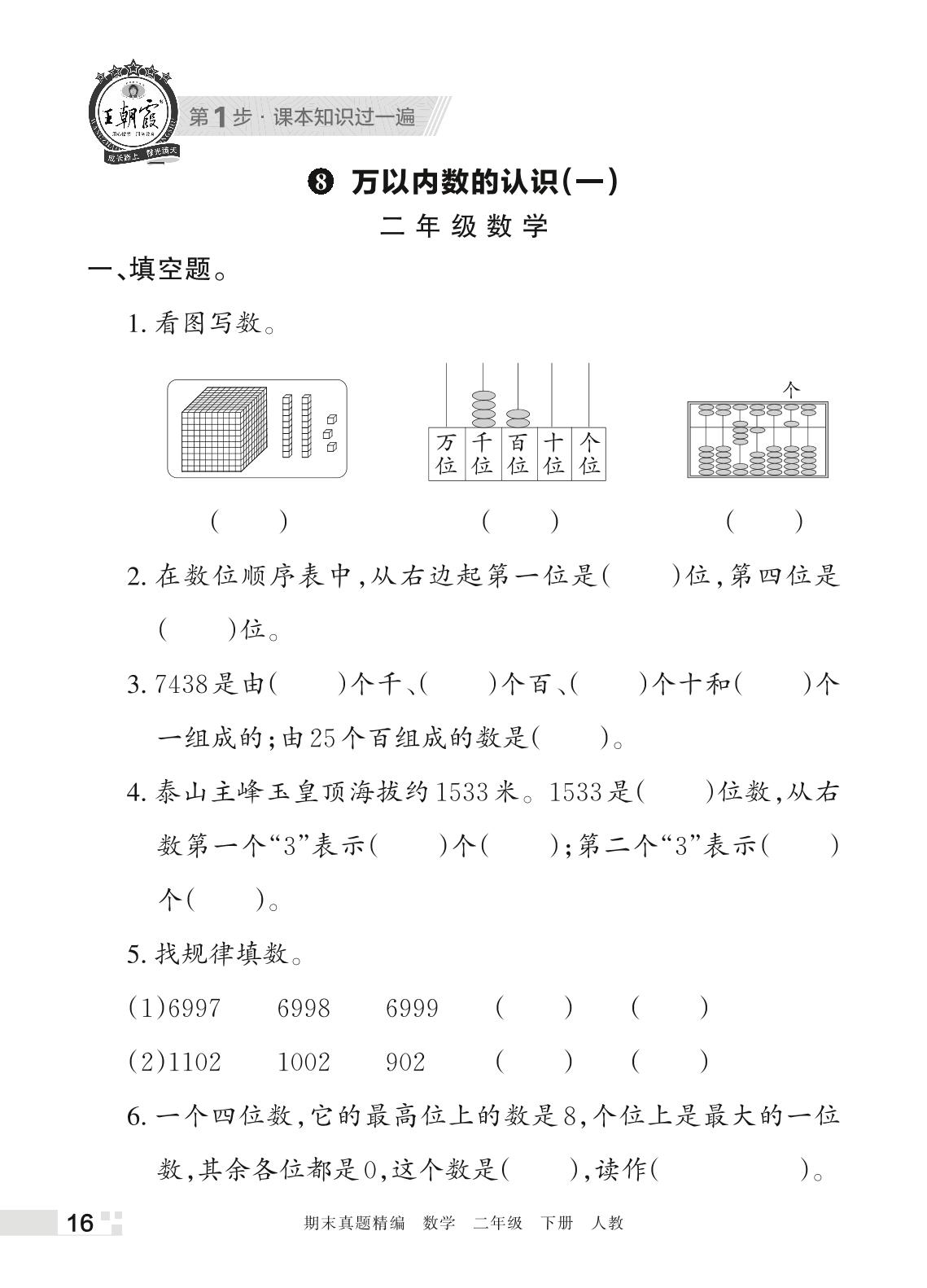 王朝霞期末过课本——8 万以内数的认识(一)二年级下册数学(人教版)_R220411164538802