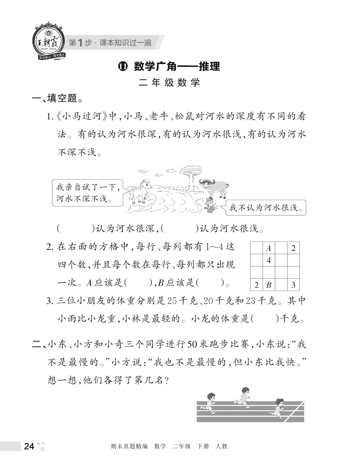 王朝霞期末过课本——11 数学广角:推理二年级下册数学(人教版)_R220411164539302