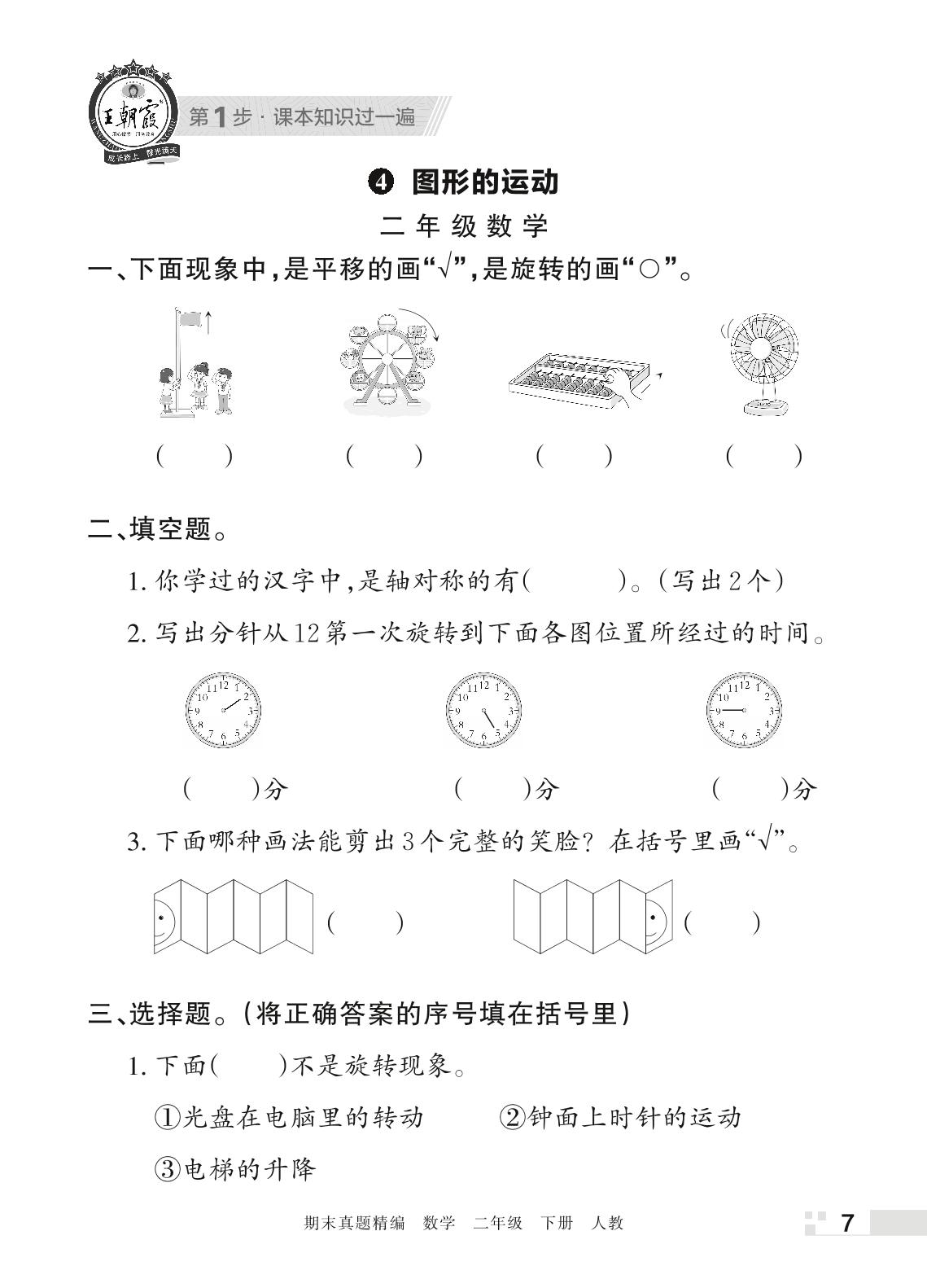 王朝霞期末过课本——4 图形的运动二年级下册数学(人教版)_R220411164539329