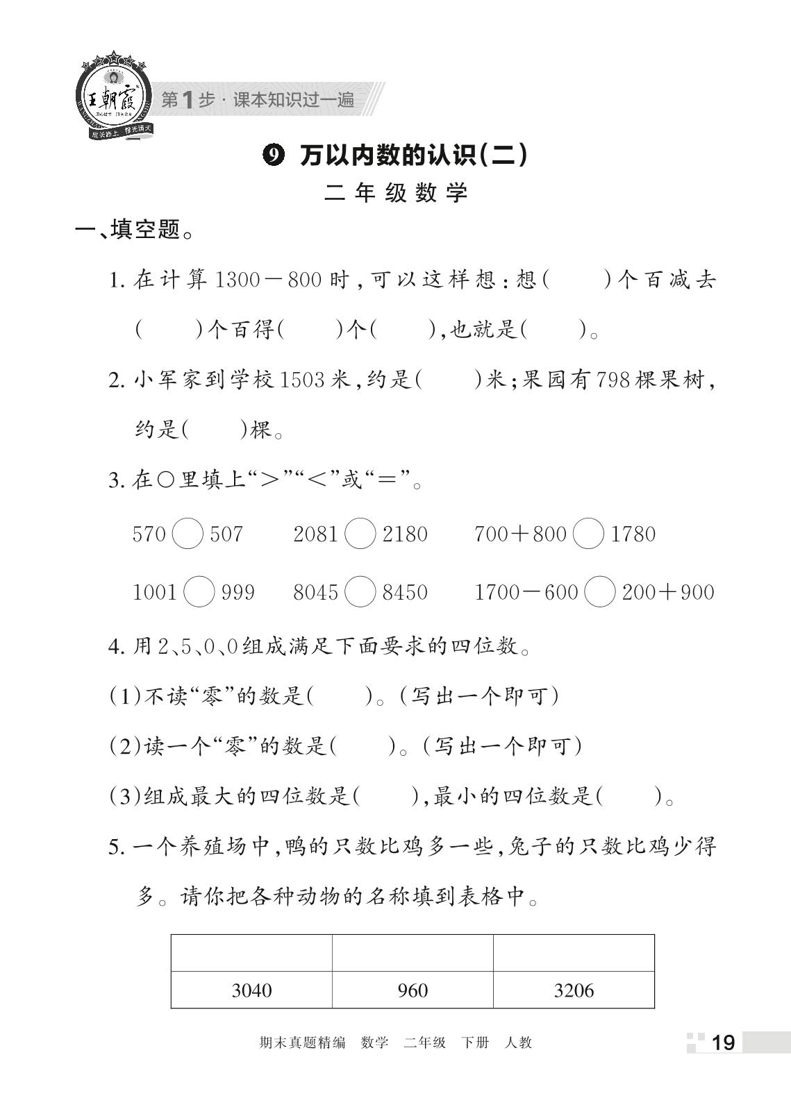 王朝霞期末过课本——9 万以内数的认识(二)二年级下册数学(人教版)_R220411164539926