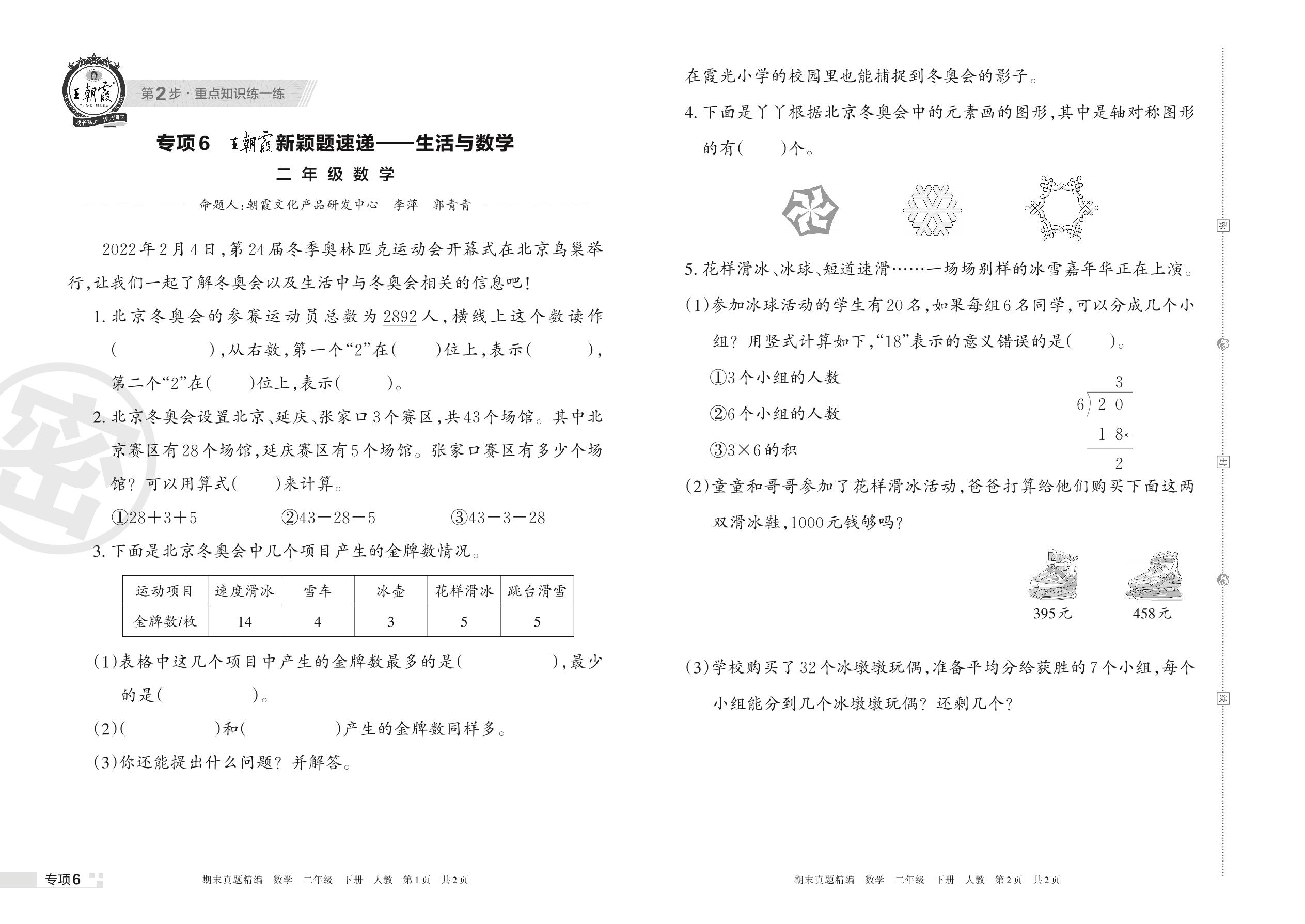 王朝霞期末专项卷——新颖题速递:生活与数学二年级下册数学(人教版)_R220411164540818【6】