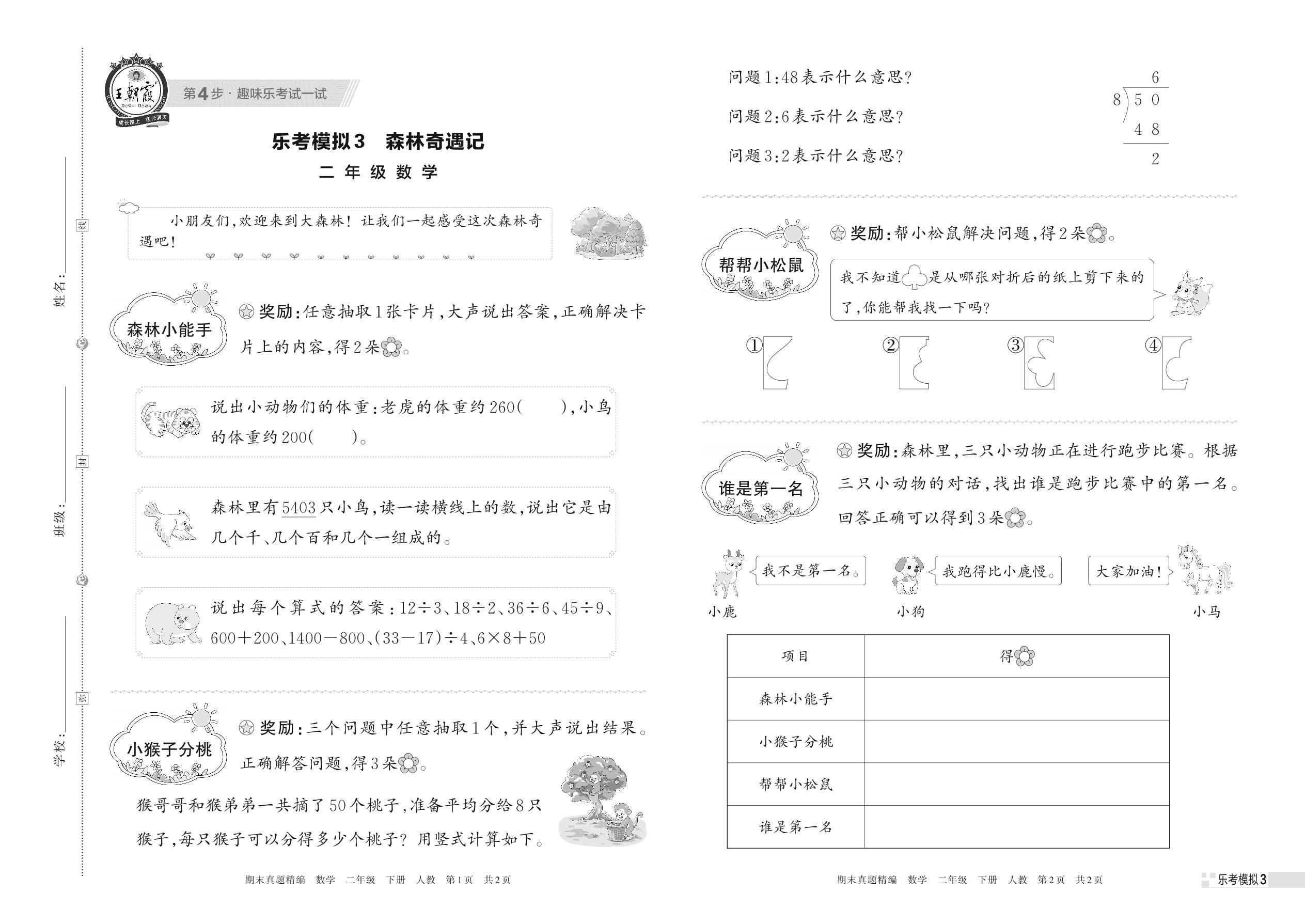乐考模拟3 森林奇遇记二年级下册数学(人教版)
