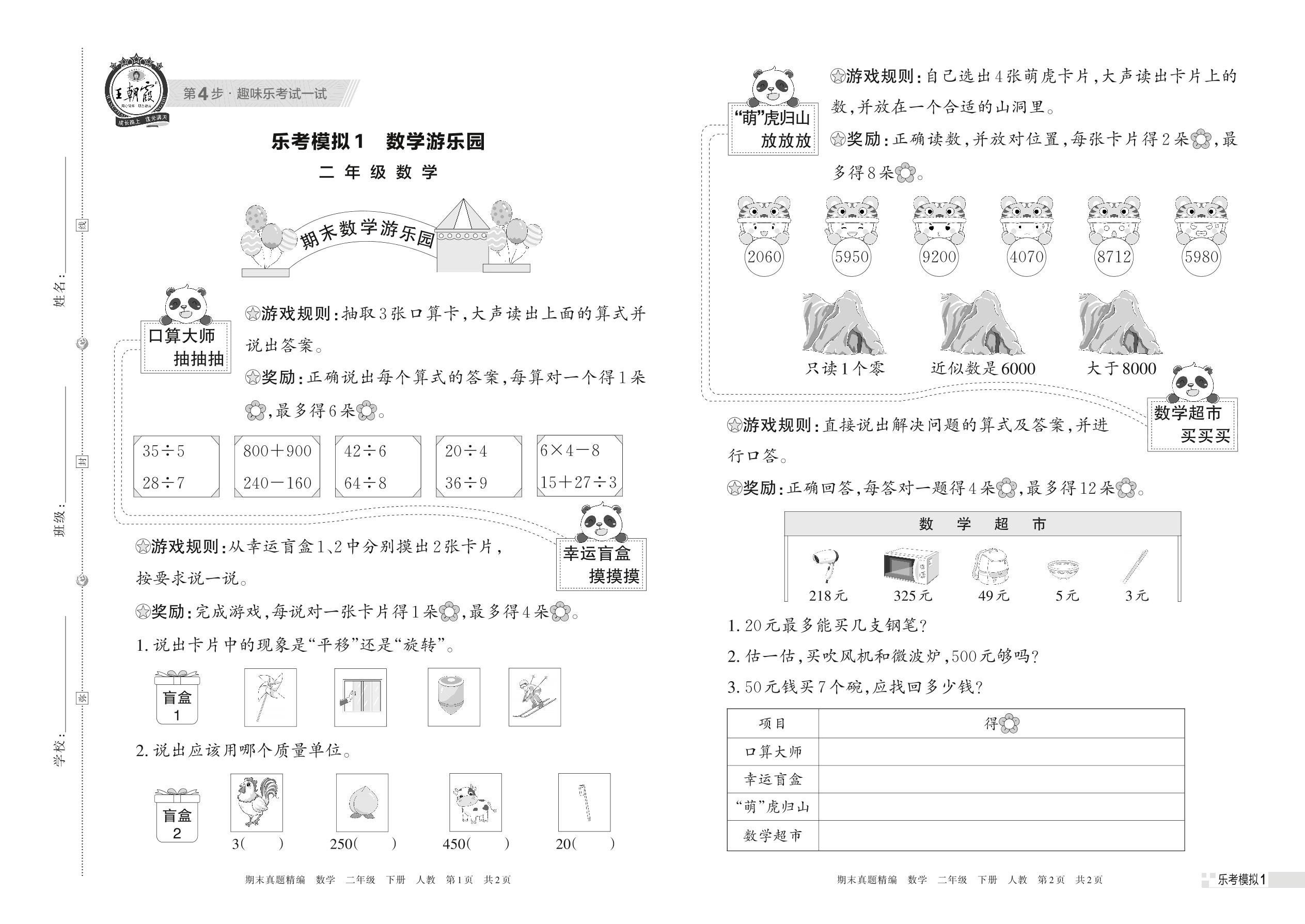 乐考模拟1 数学游乐园二年级下册数学(人教版)