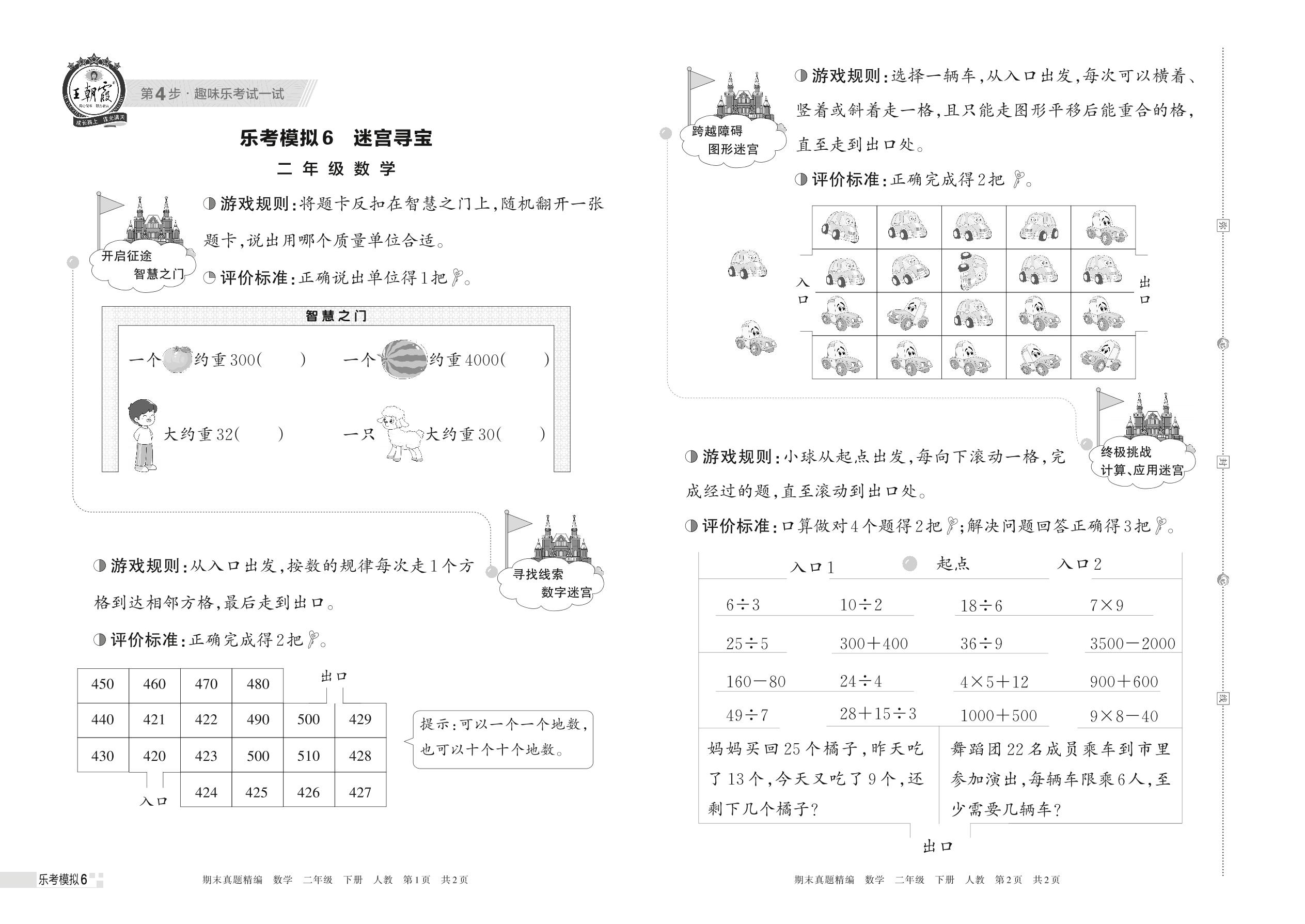 乐考模拟6 迷宫寻宝二年级下册数学(人教版)_R220411164541150