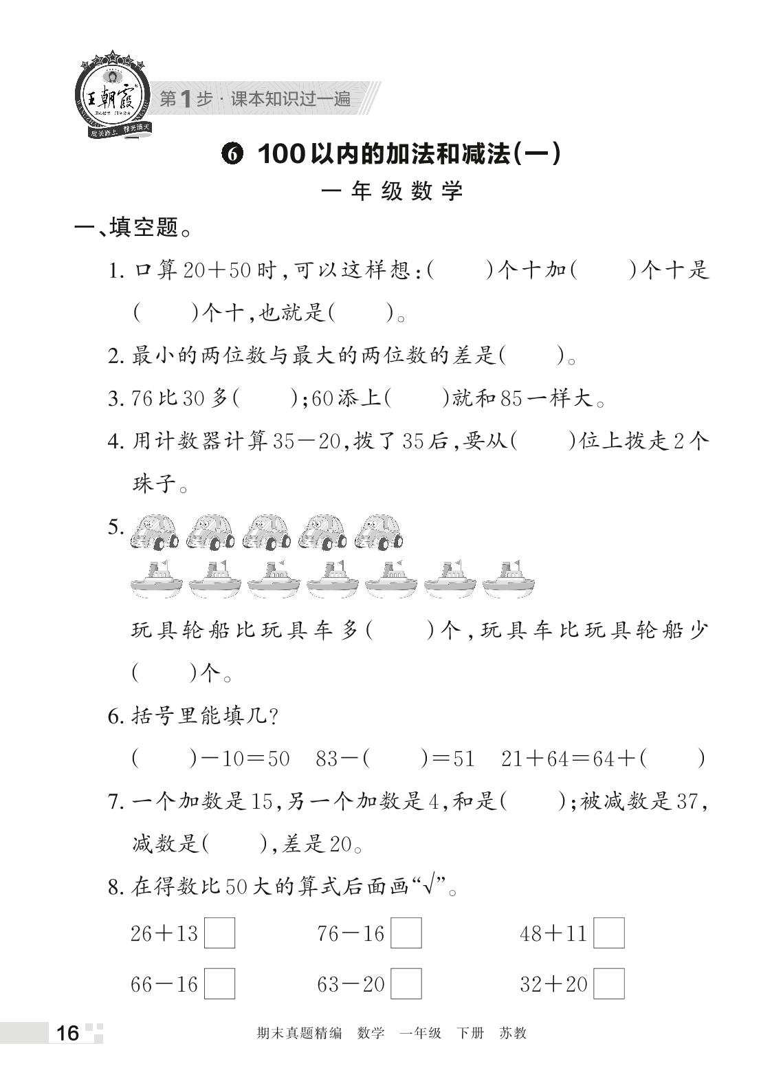 王朝霞期末过课本——6 100以内的加法和减法(一)一年级下册数学(苏教版)_R220411165213386