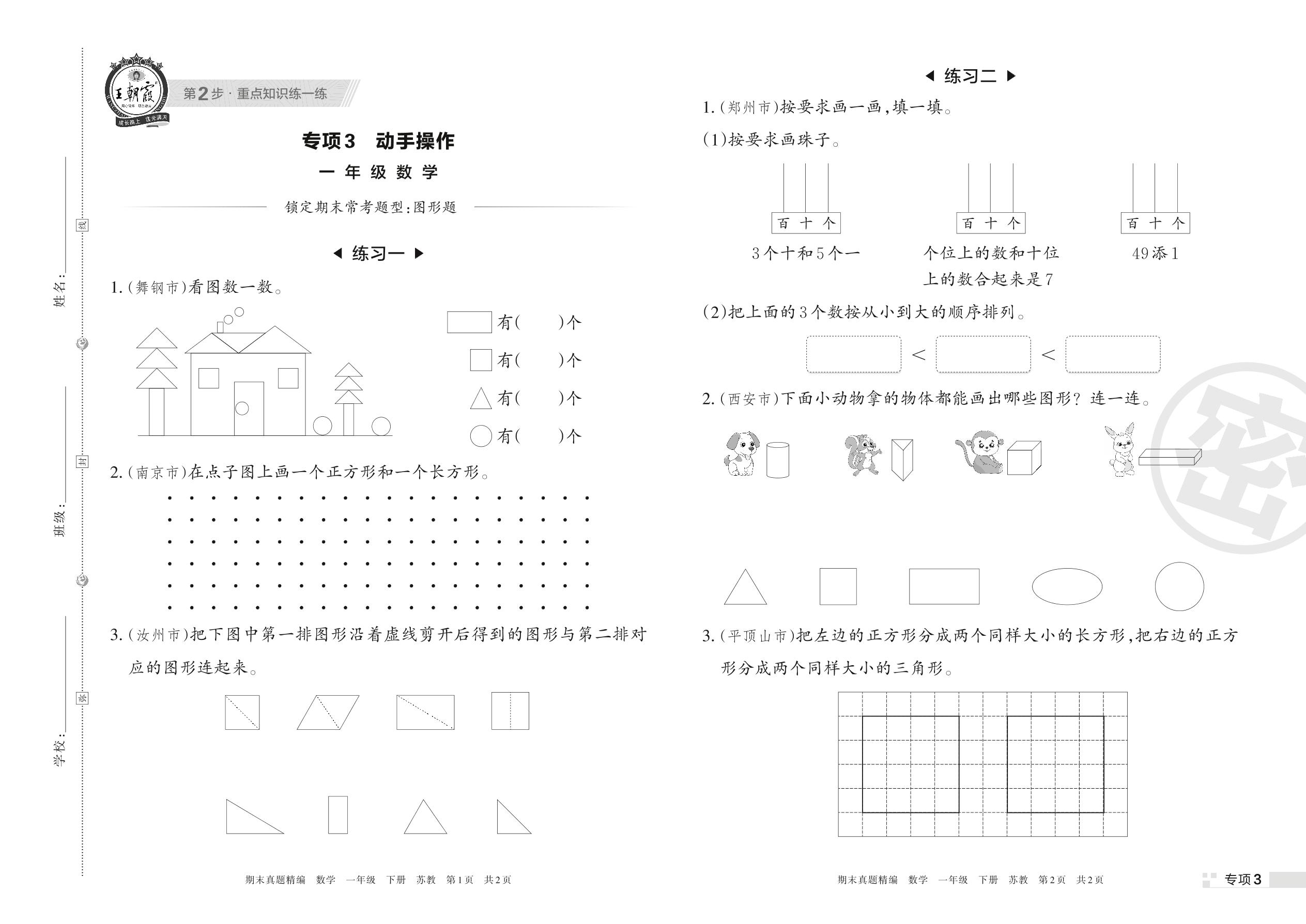 王朝霞期末专项卷——动手操作一年级下册数学(苏教版)_R220411165213990【3】