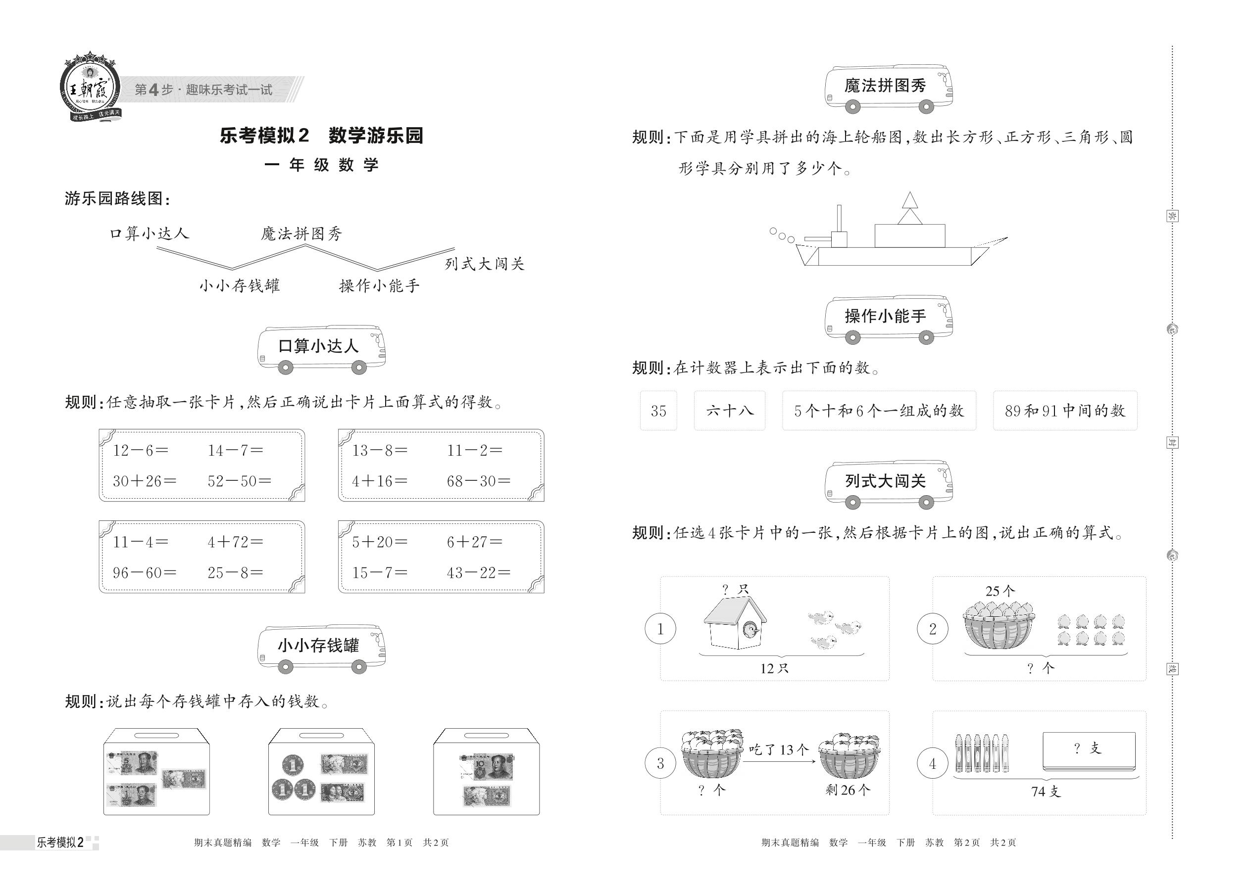 乐考模拟2 数学游乐园一年级下册数学(苏教版)