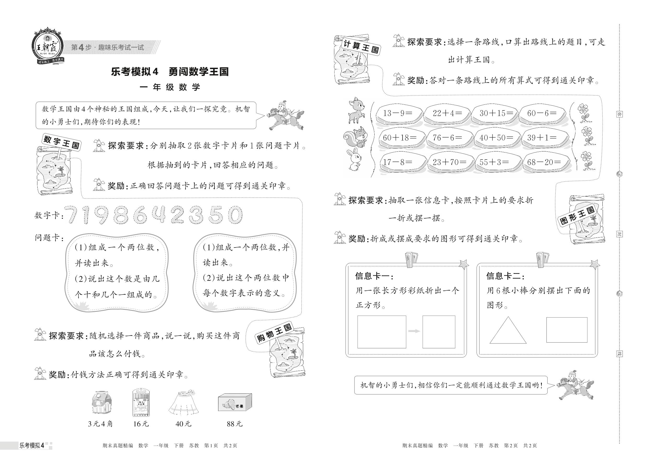 乐考模拟4 勇闯数学王国一年级下册数学(苏教版)