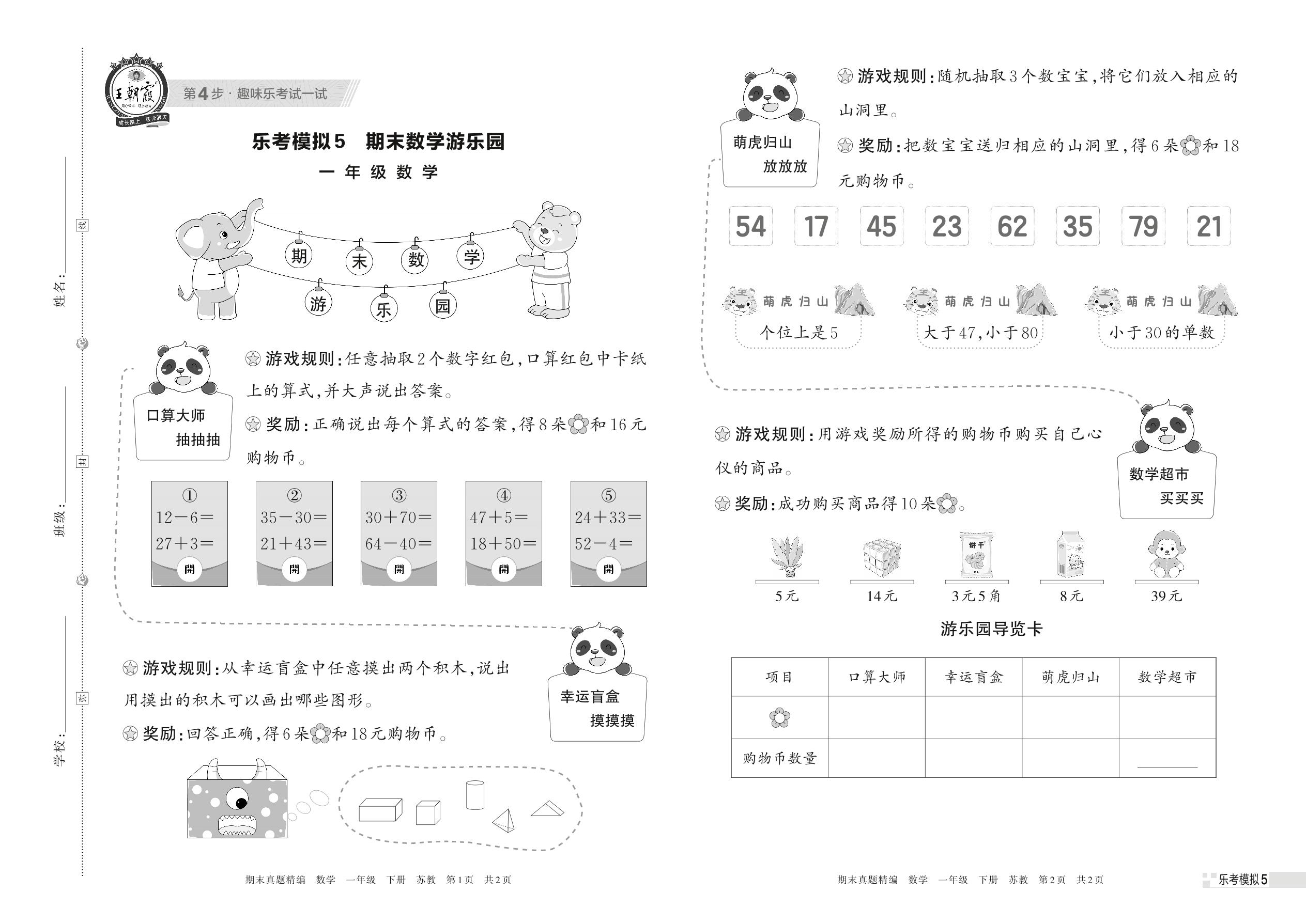 乐考模拟5 期末数学游乐园一年级下册数学(苏教版)