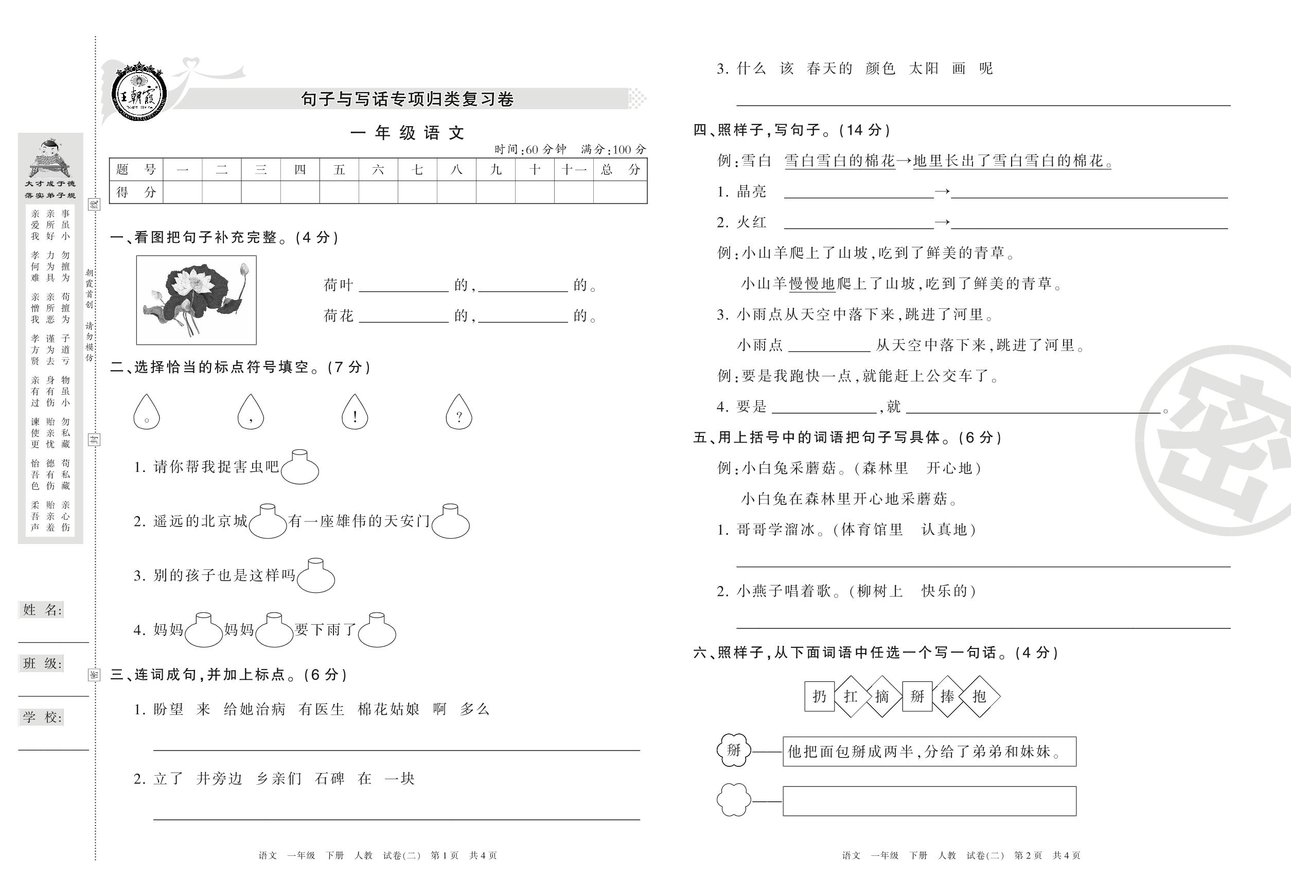 王朝霞期末专项卷一年级下册语文(人教版)_R210731183648【2】