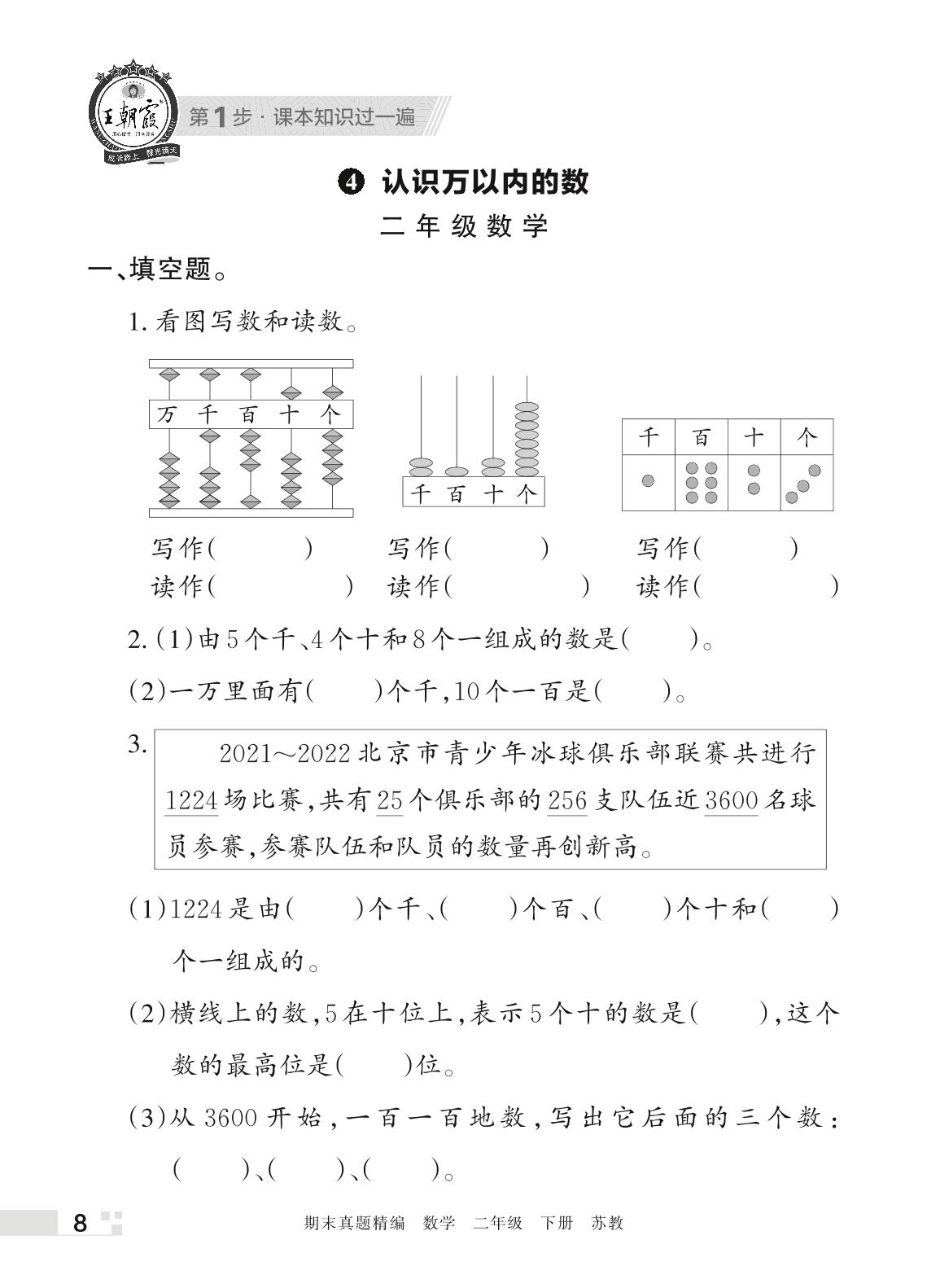 王朝霞期末过课本——4 认识万以内的数二年级下册数学(苏教版)_R220411165837601