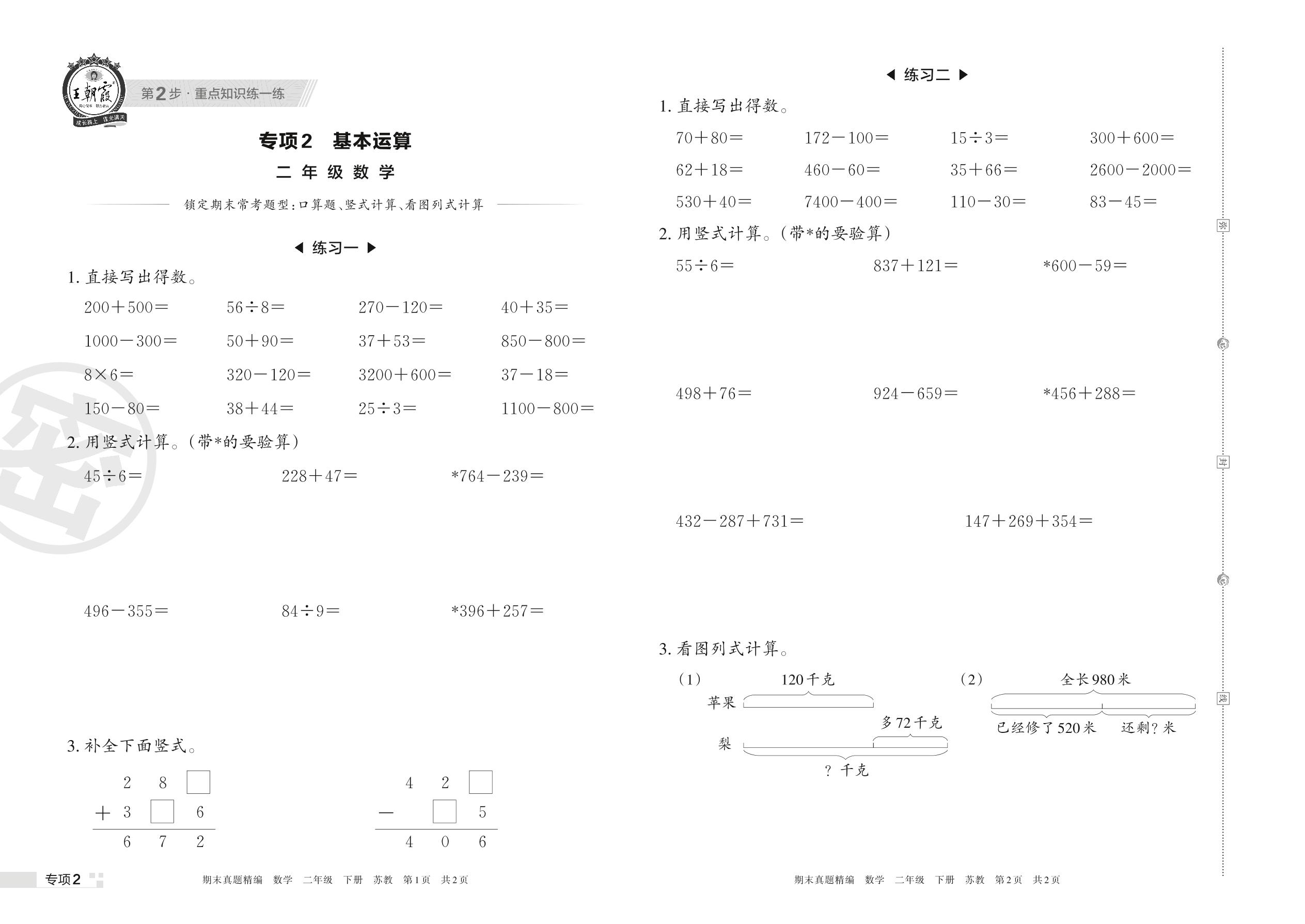 王朝霞期末专项卷——基本运算二年级下册数学(苏教版)_R220411165838647【2】