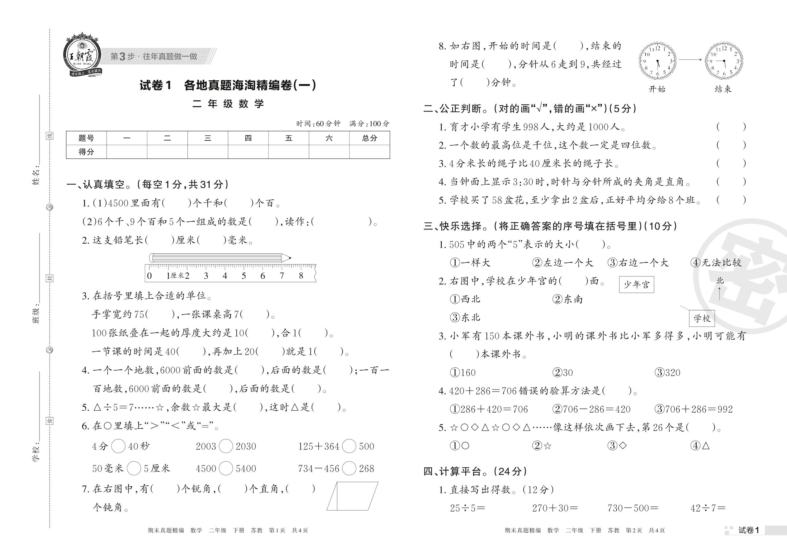 各地真题海淘精编卷(一)二年级下册数学(苏教版)_R220411165839821【1】