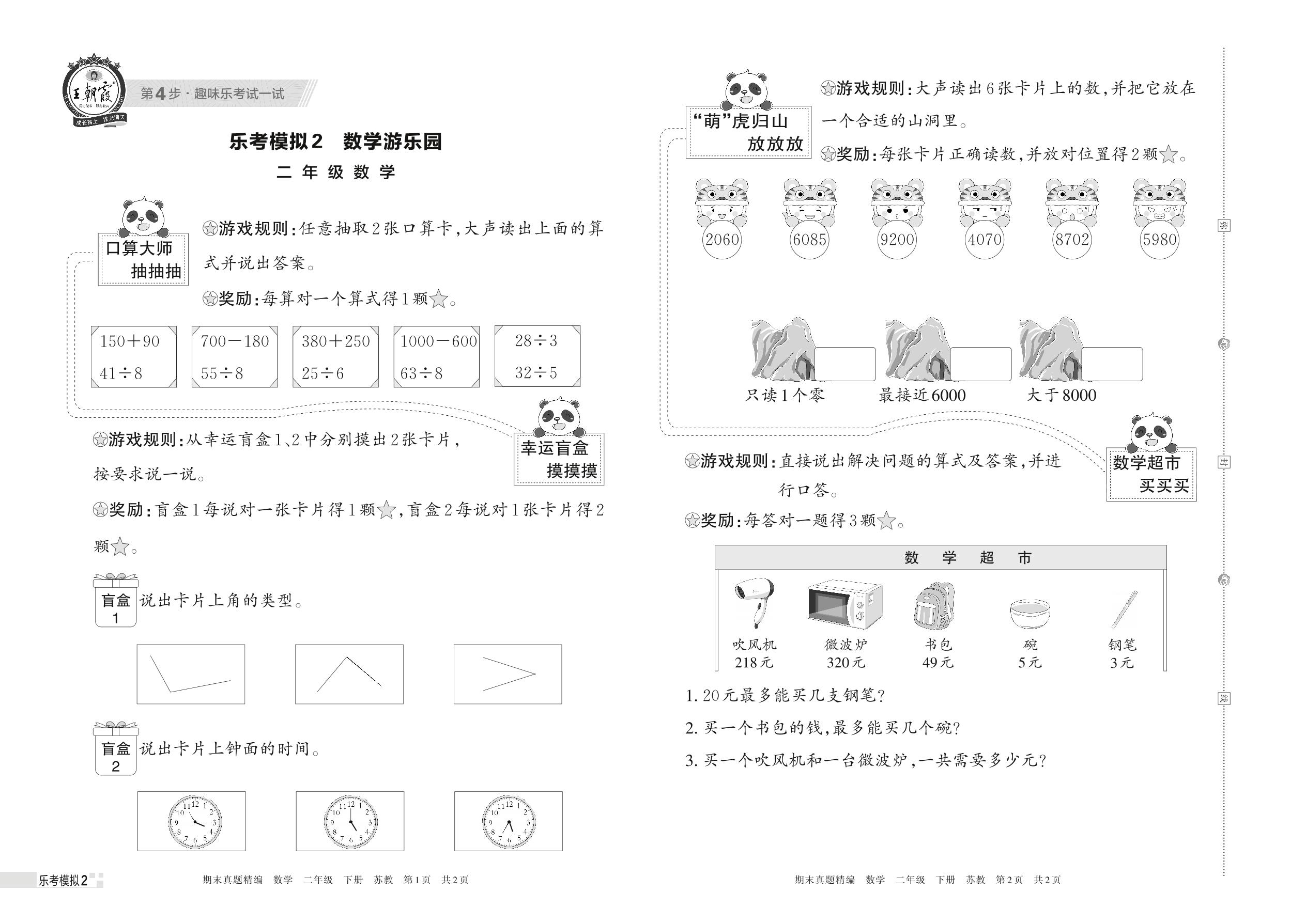 乐考模拟2 数学游乐园二年级下册数学(苏教版)
