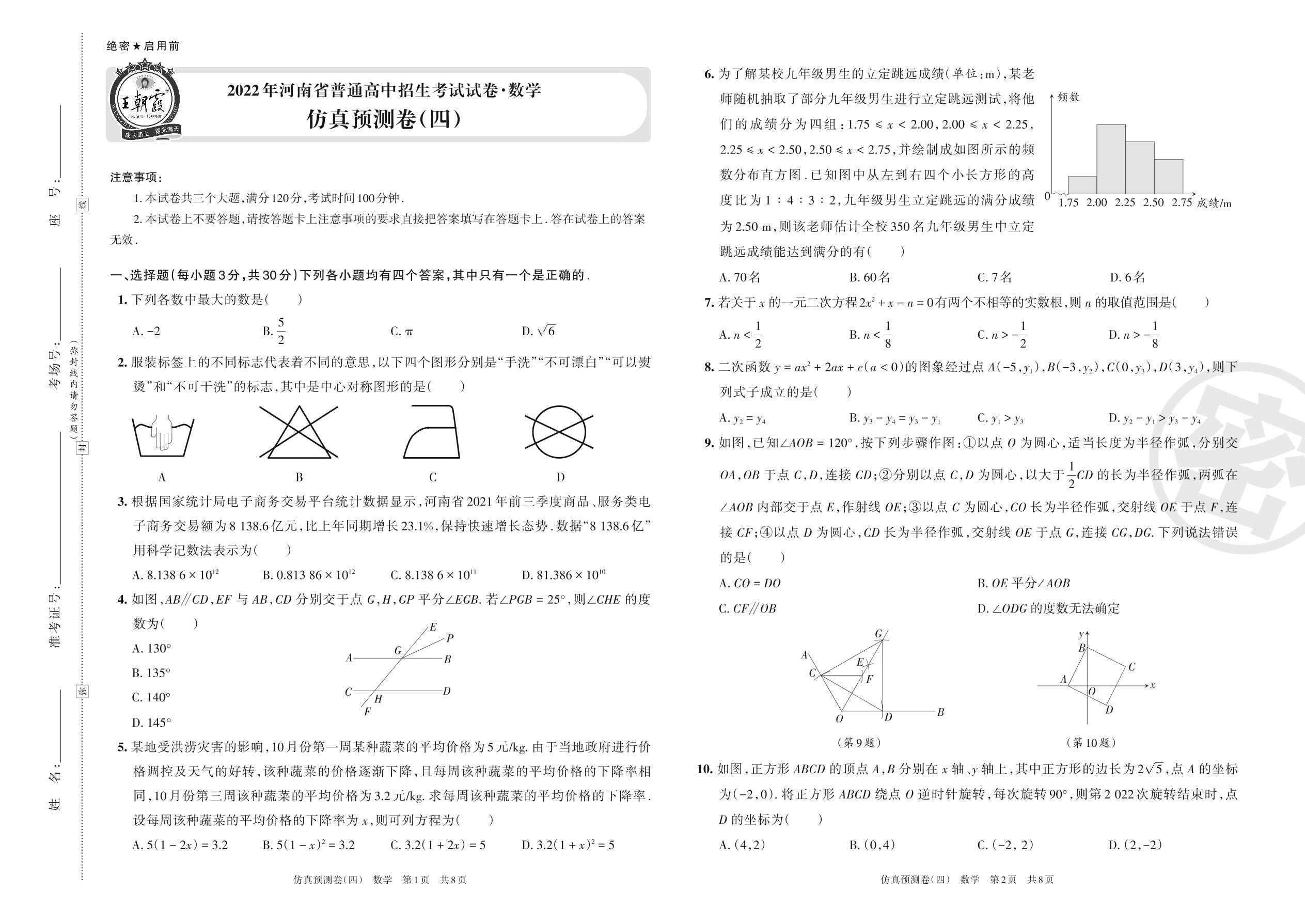2022年河南省普通高中招生考试试卷·数学仿真预测卷(四)