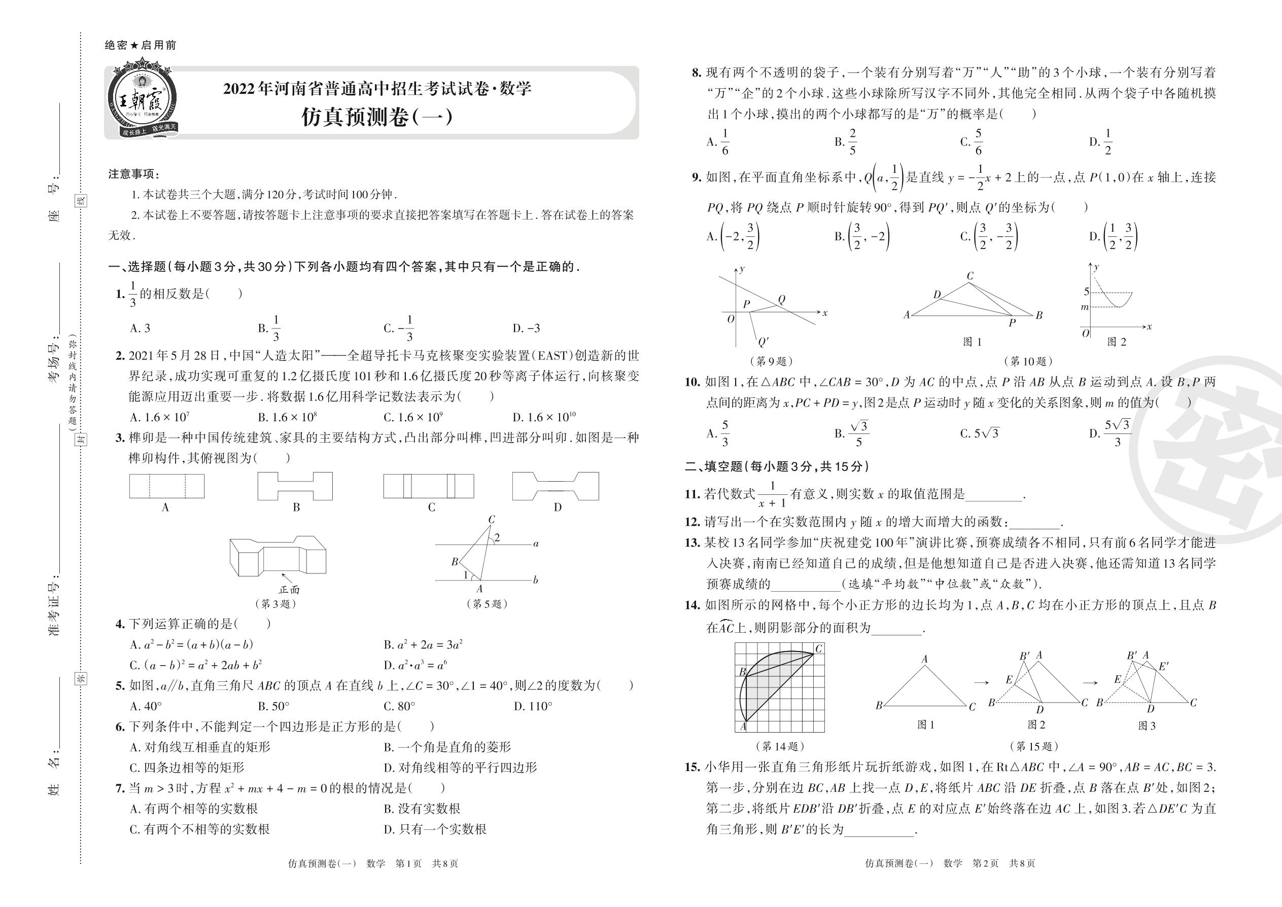 2022年河南省普通高中招生考试试卷·数学仿真预测卷(一)