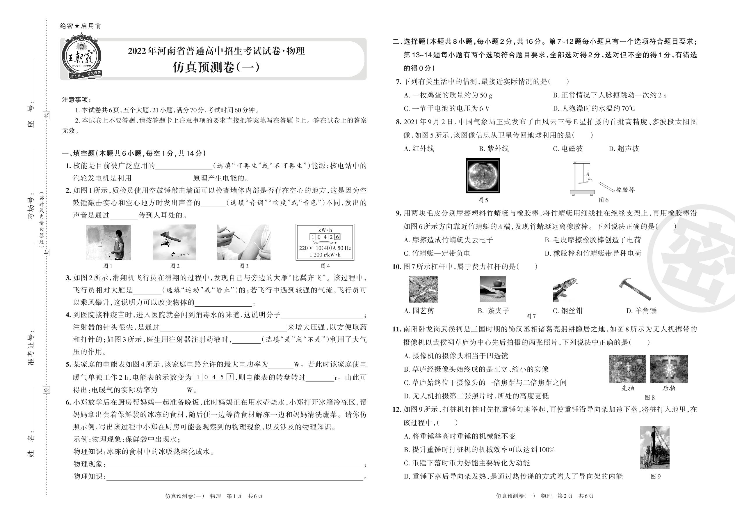 2022年河南省普通高中招生考试试卷·物理仿真预测卷(一)