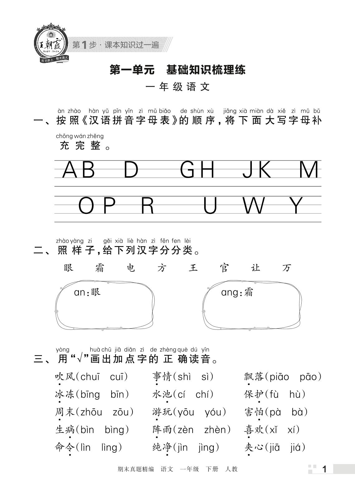 王朝霞期末过课本——第一单元 基础知识梳理练一年级下册语文(人教版)_R220411170429664