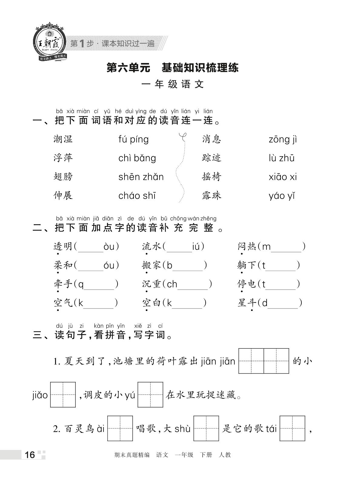 王朝霞期末过课本——第六单元 基础知识梳理练一年级下册语文(人教版)_R220411170430522